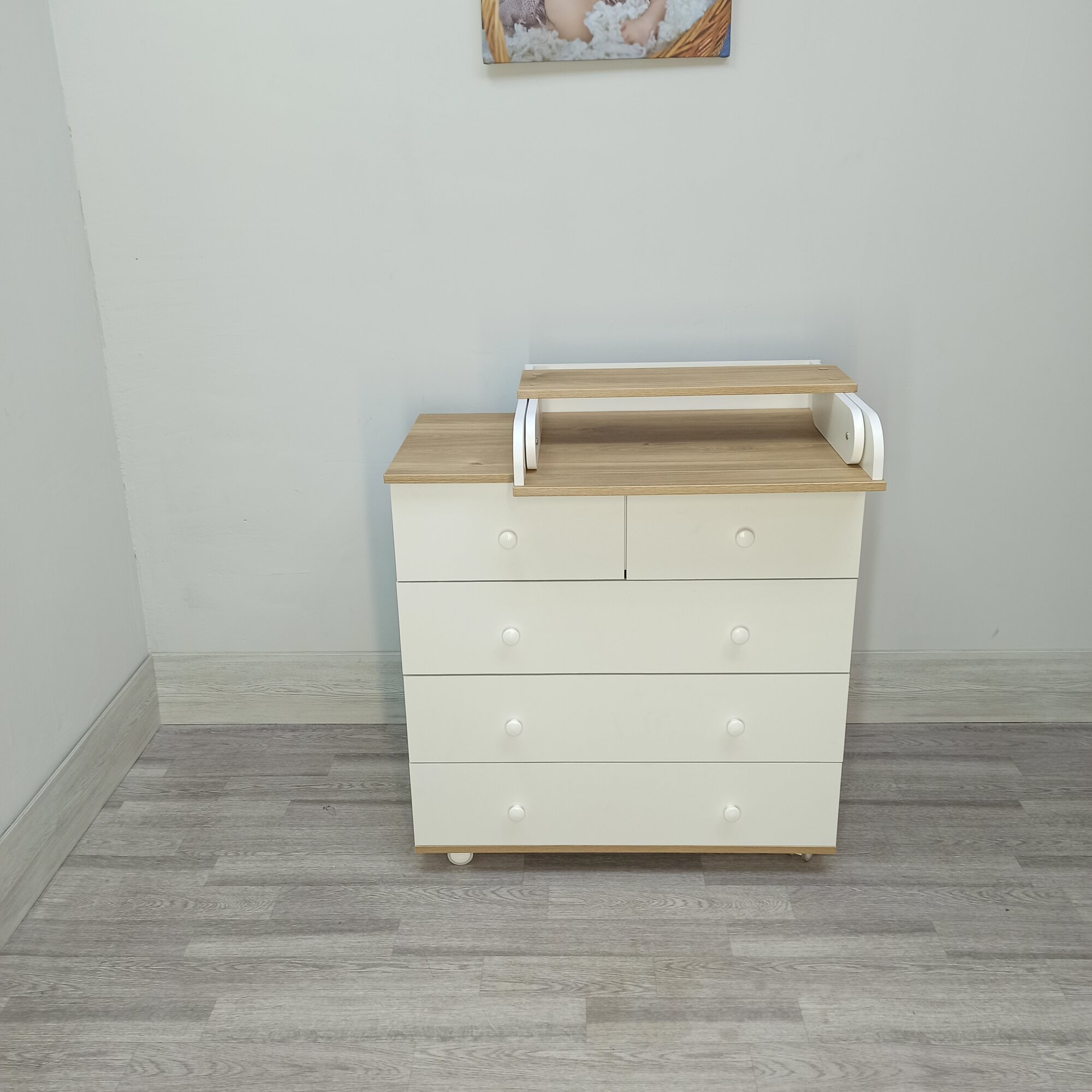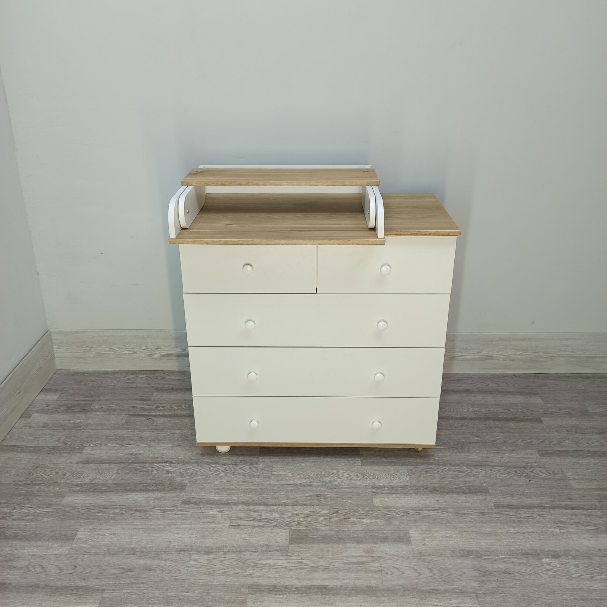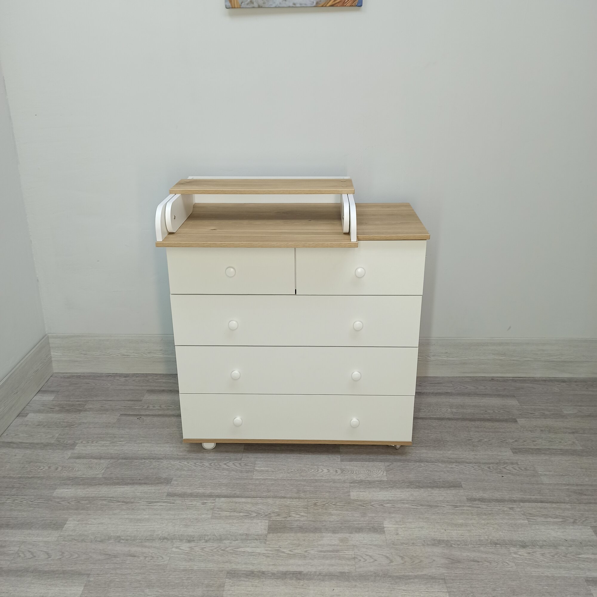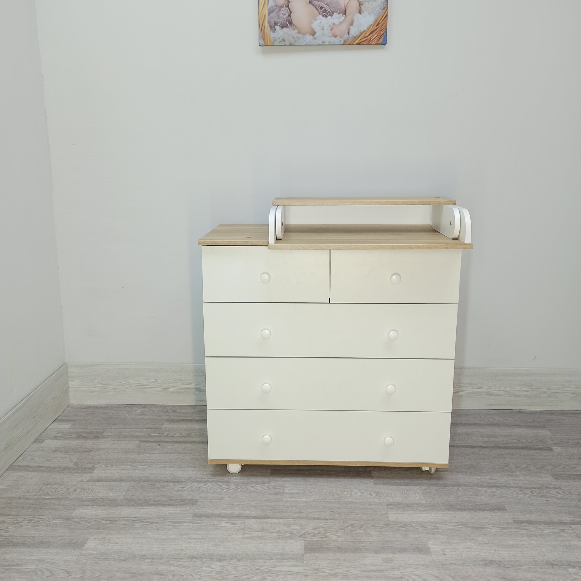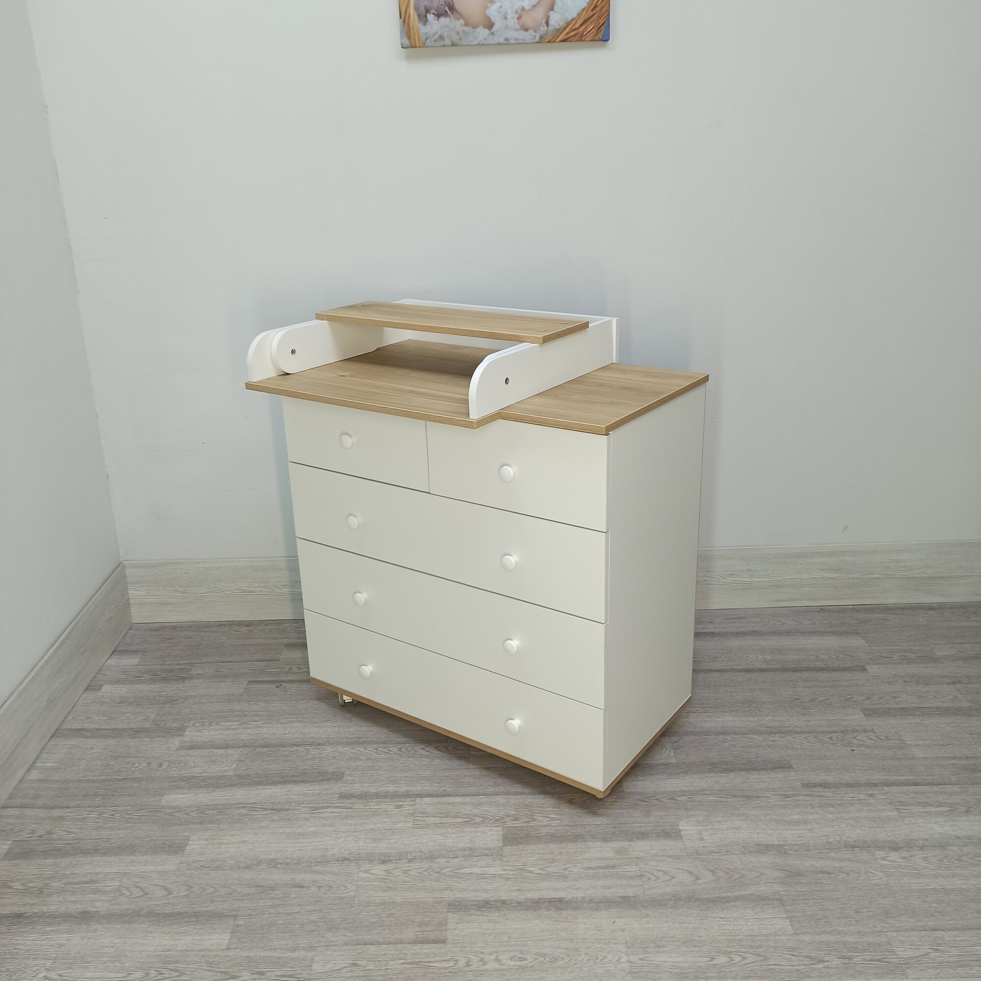 Детский пеленальный комод Nova 800/5 белый /дуб интересное: