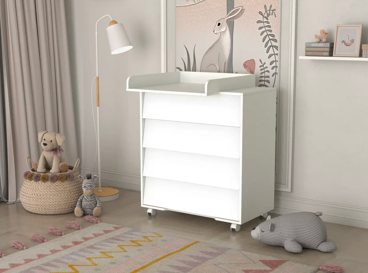 Купить Комод пеленальный для новорожденных на колесах Белый 4 ящика