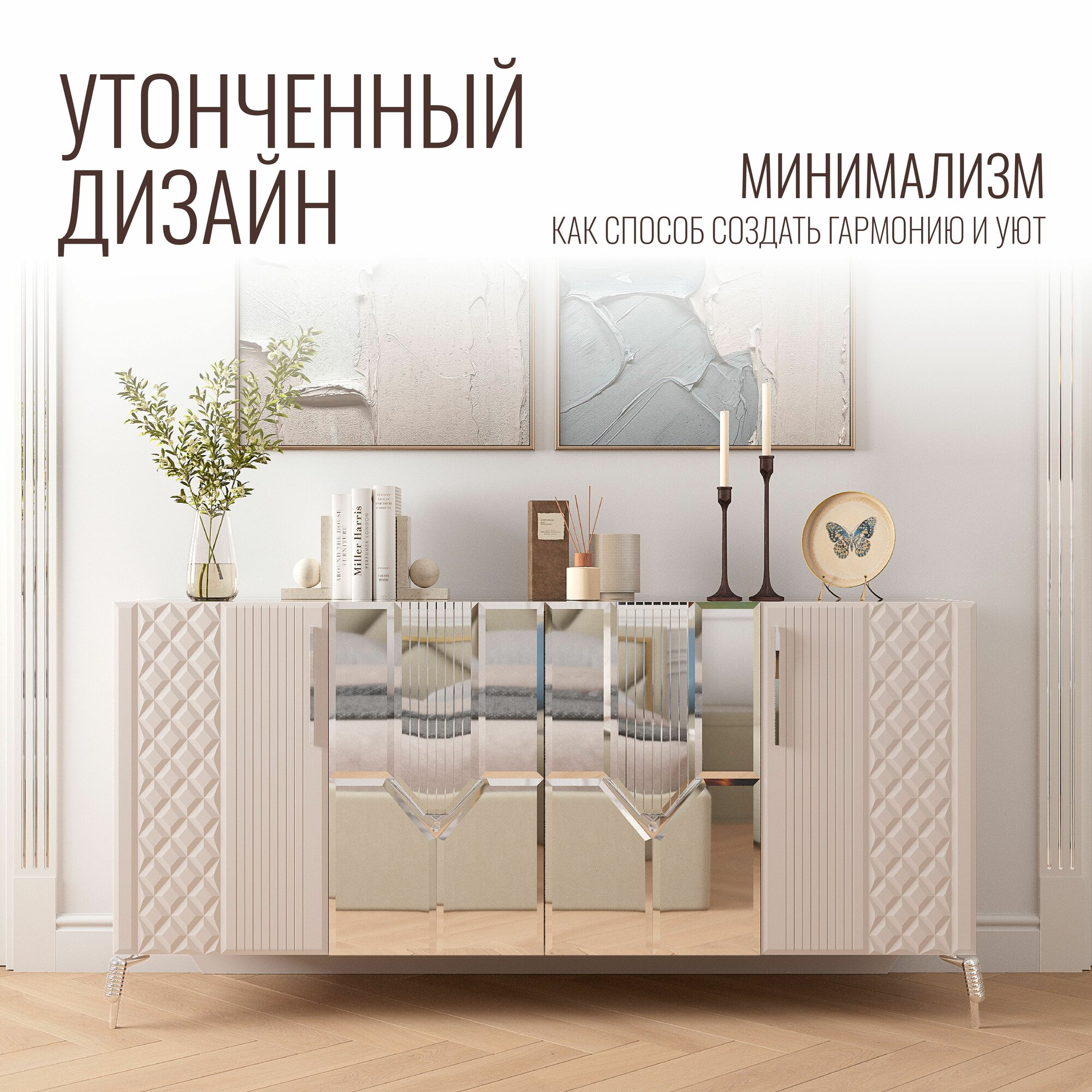 Комод для вещей деревянный с полками бежевый серебро 183х52x90 см интересное: