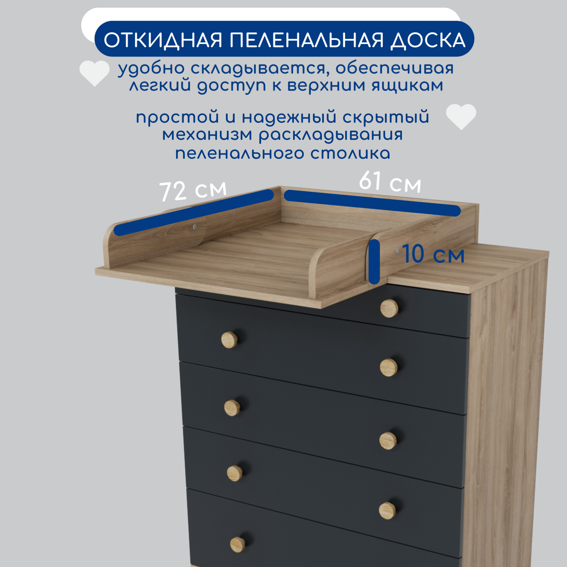 Купить Комод детский с органайзером и матрасиком, 5 ящиков, ЛДСП, дуб графит