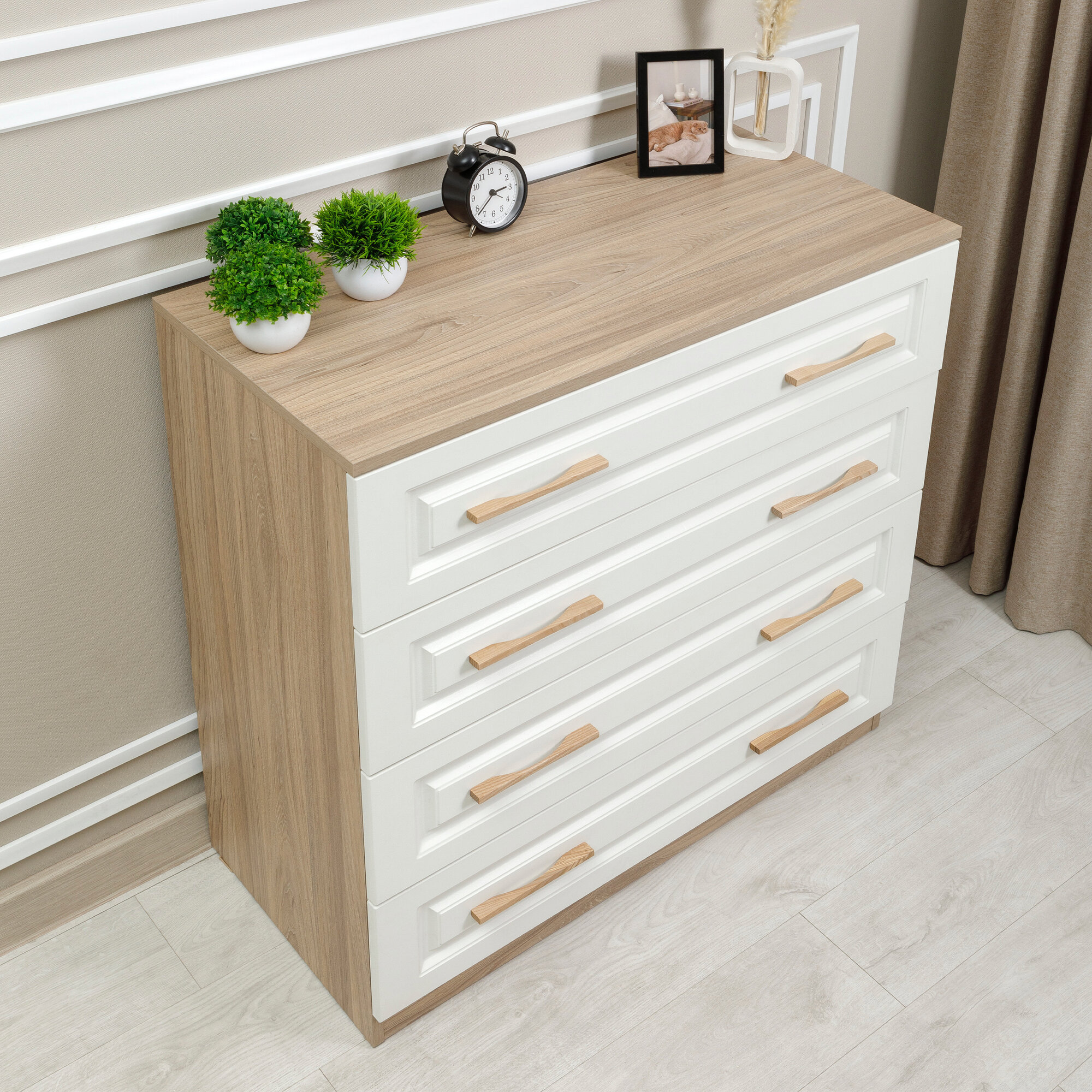 Комод Мебель Трия Сэнди, 4 ящика, ВхШхГ 86,6x92,4x43 см, ЛДСП/ДСП/МДФ интересное: