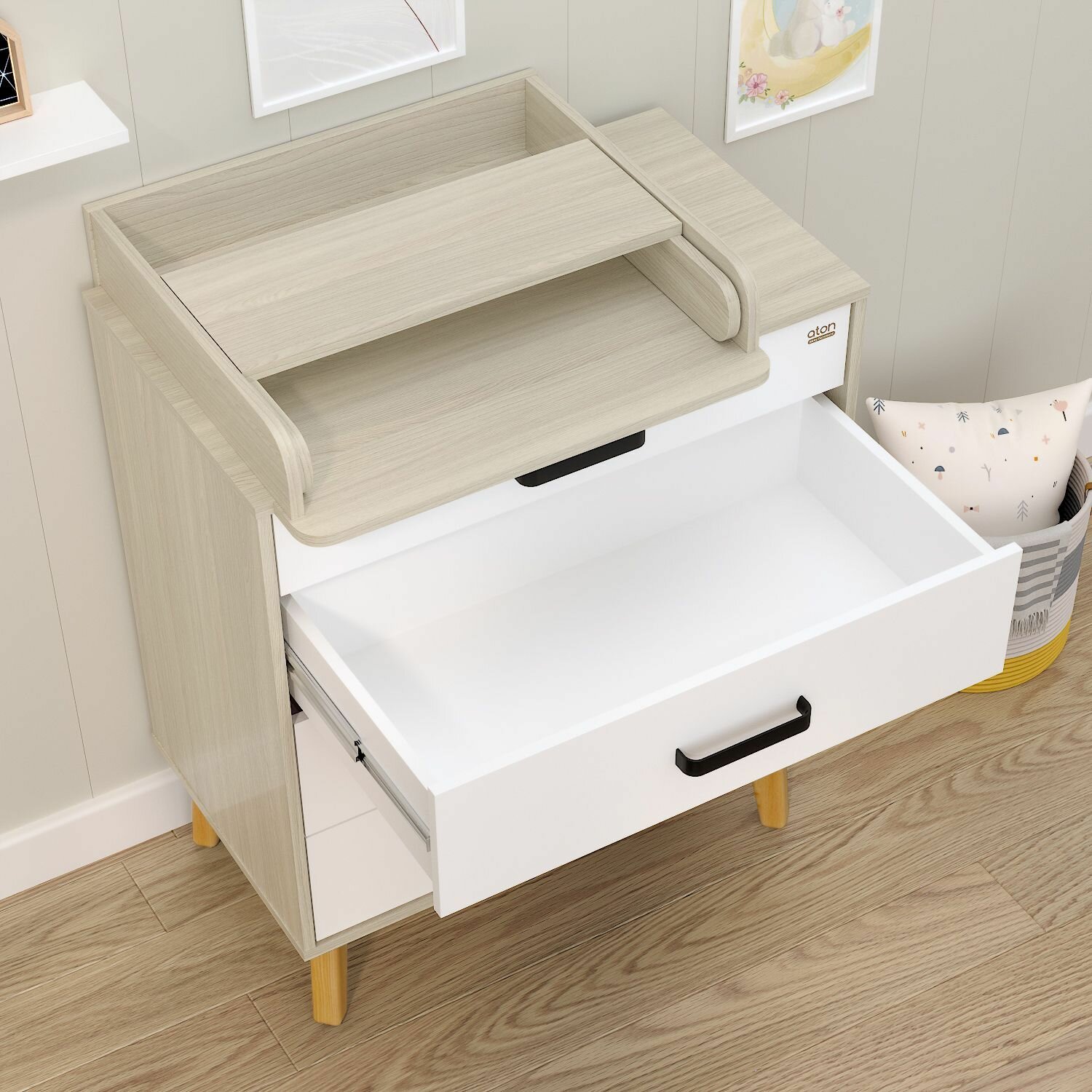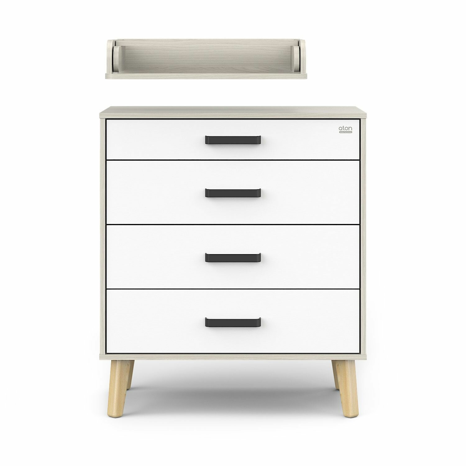 Комод для новорожденных Gall Nero, белый/черные ножки, Aton, со съёмным пеленальным столиком, 102х80х56 см