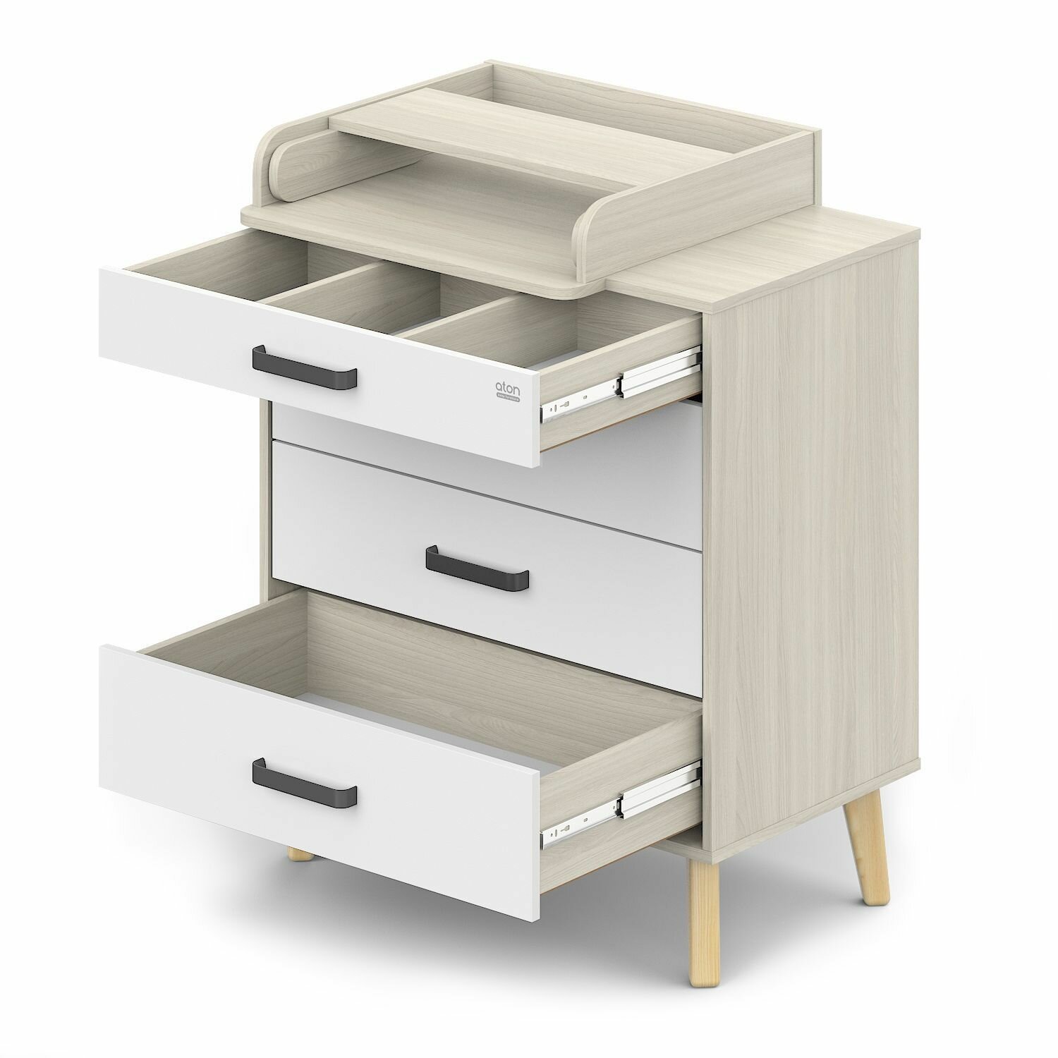 Комод пеленальный Атон Мебель Gall, Белый/натуральные ножки, со съёмным пеленальным столиком, 102х80х56 см