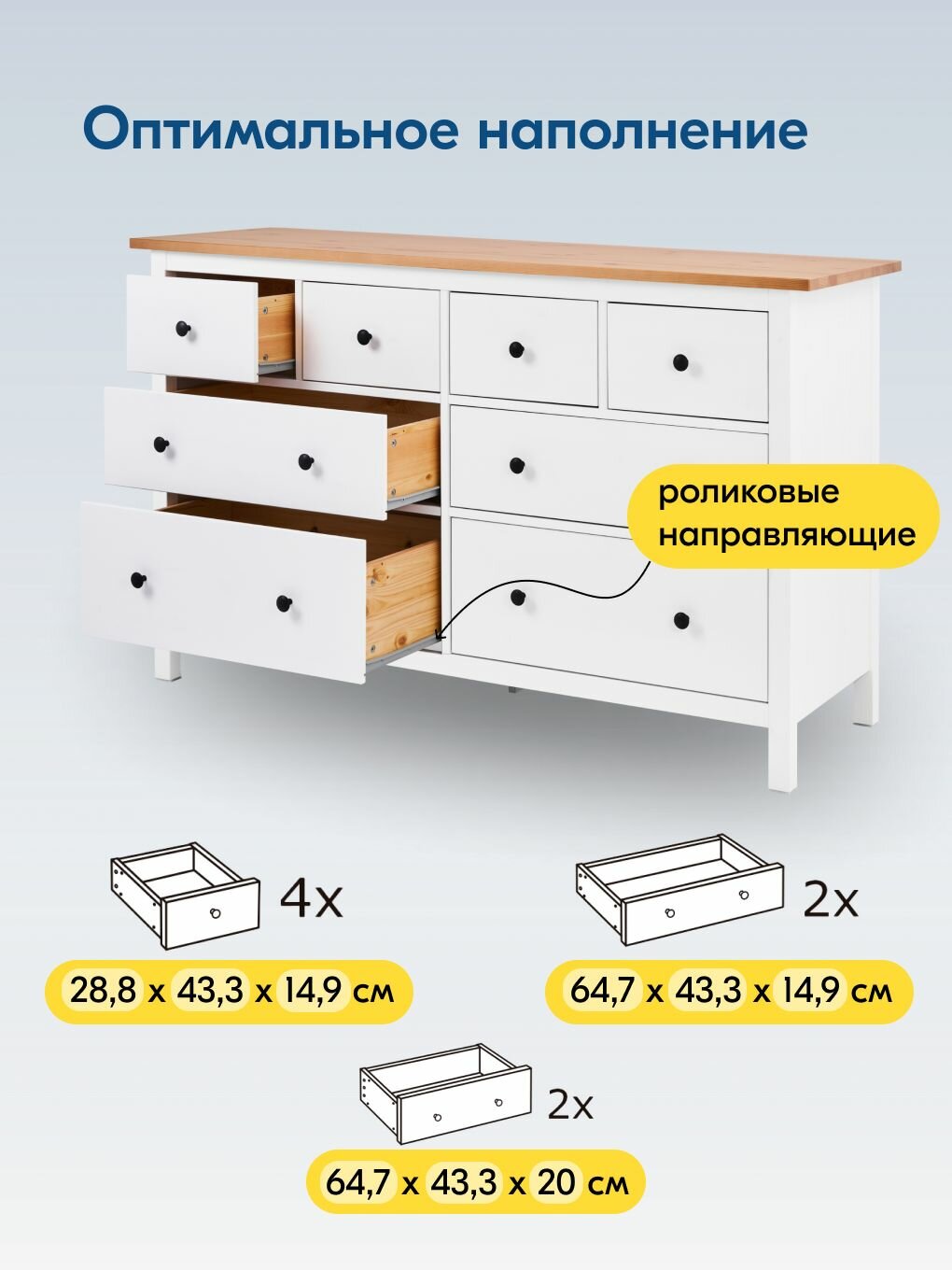 Комод КЫМОР 8 ящиков 160х96х50 белый/светло-коричневый, из массива дерева интересное:
