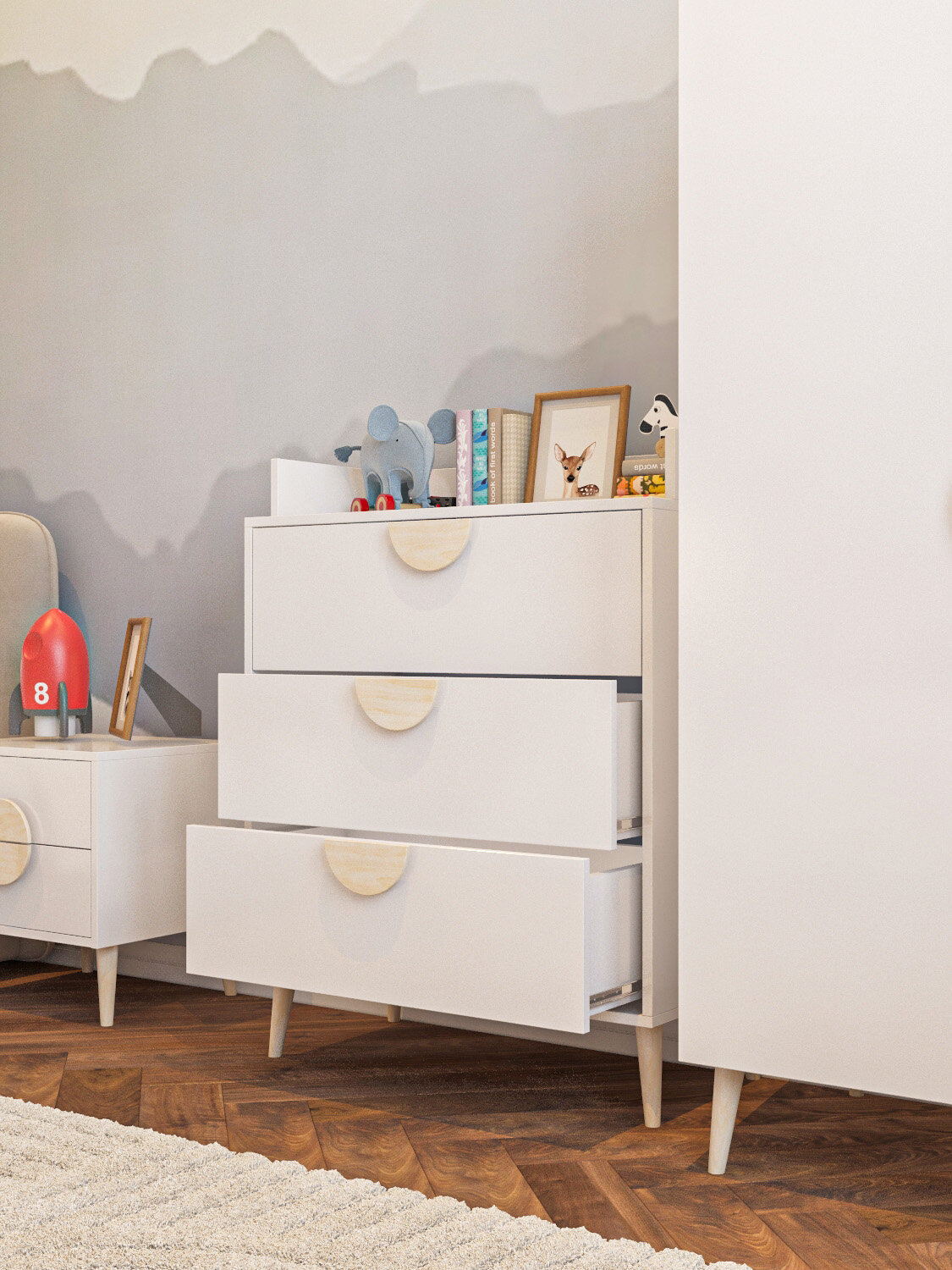 Купить Комод Львиная семейка Монтессори, детский, белый, с 3 ящиками