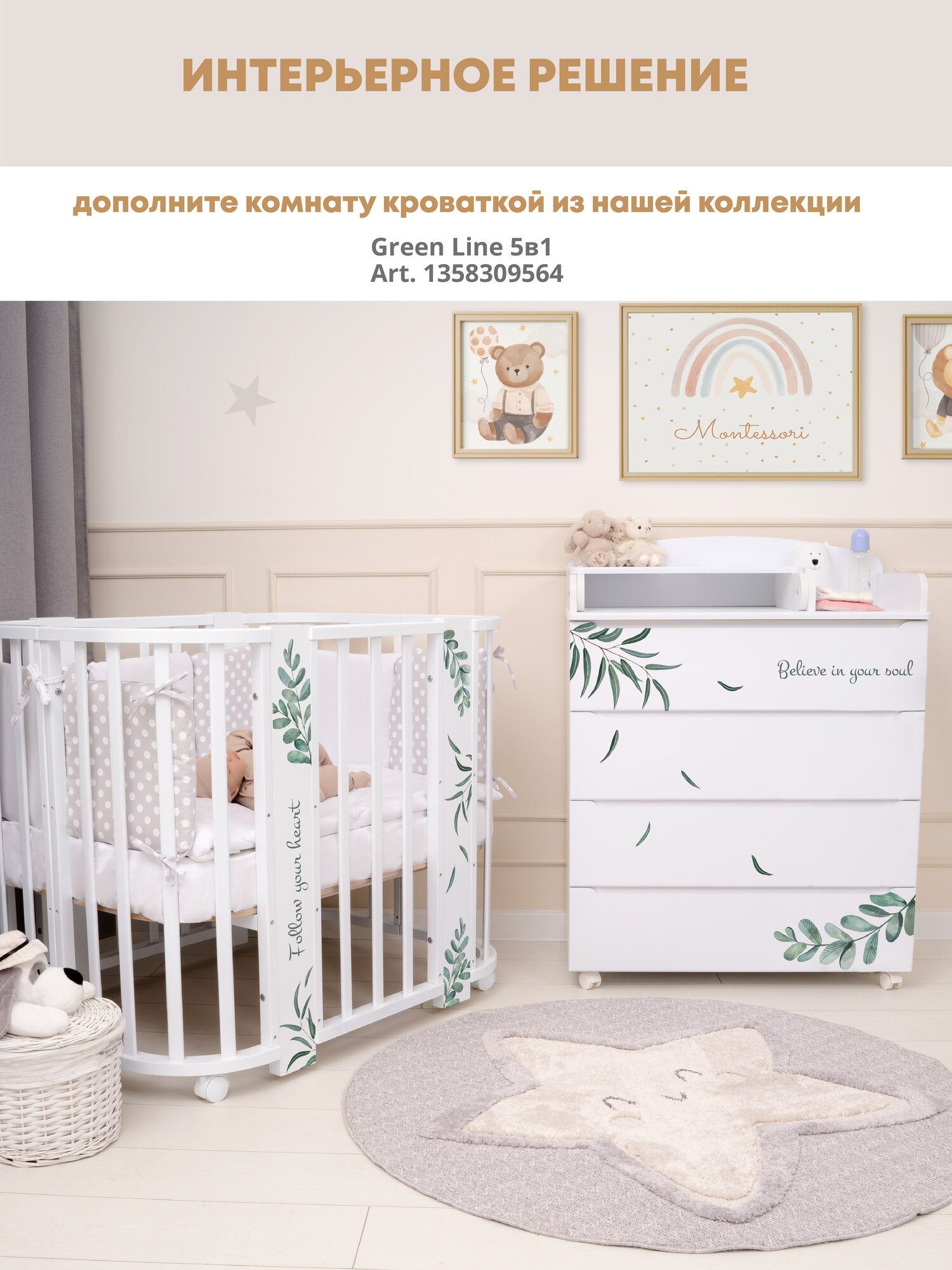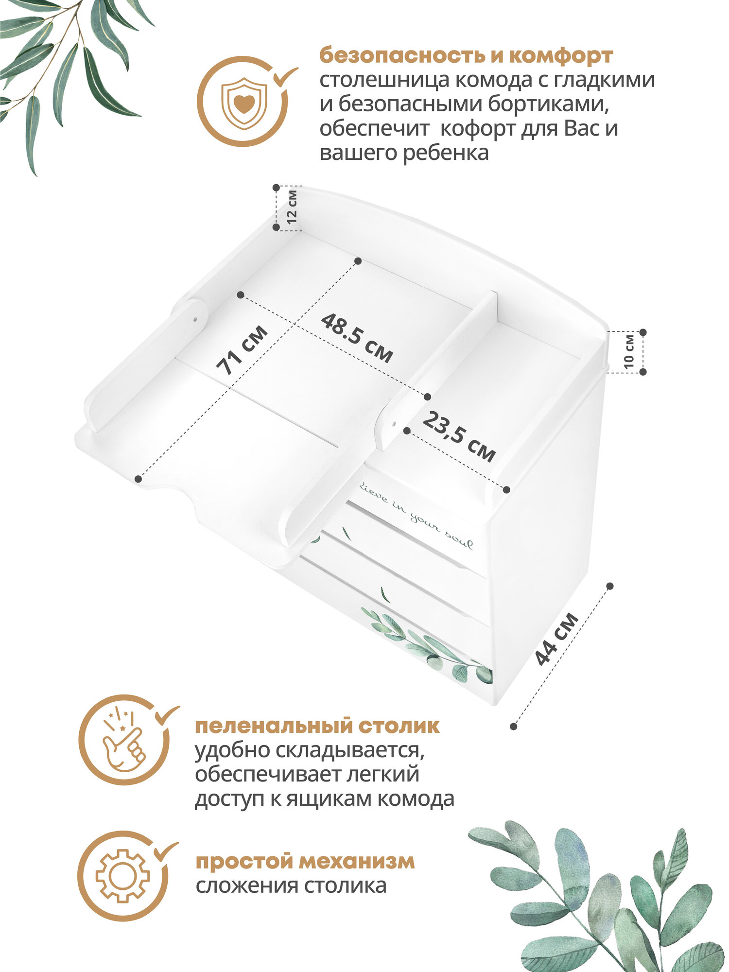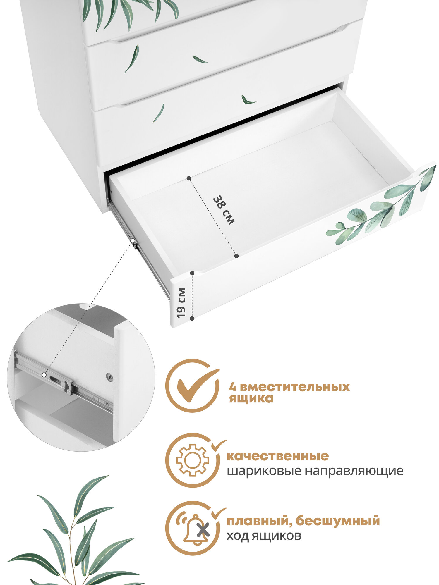 Детский пеленальный комод Indigo Green Line 800/4 с ящиками, листочки