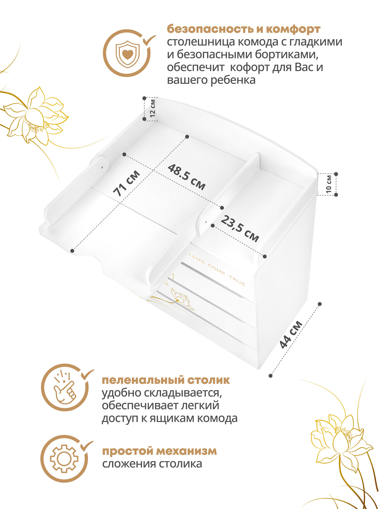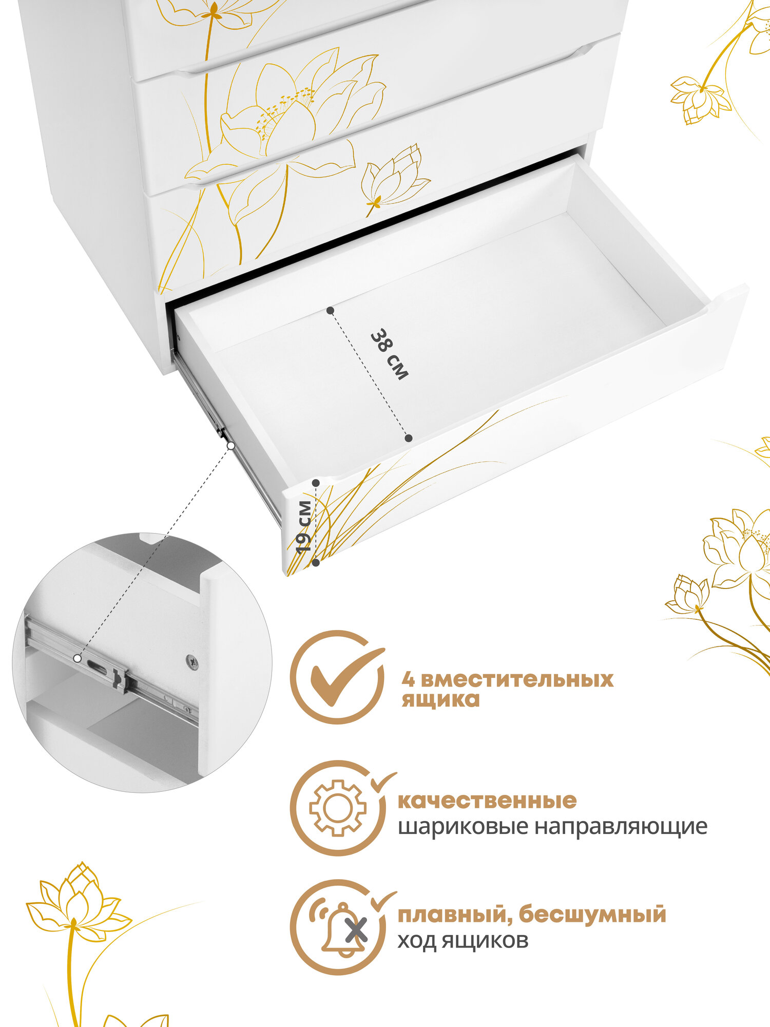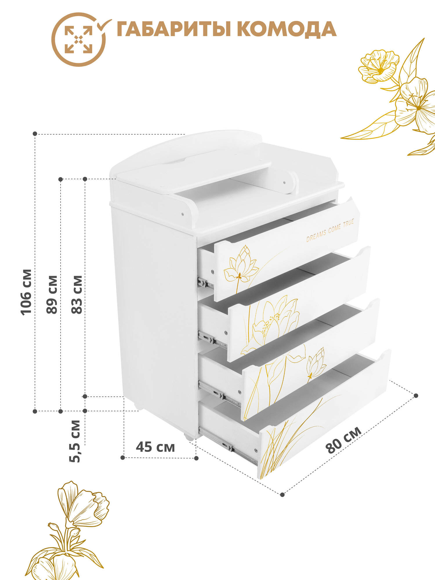 Детский пеленальный комод Indigo Green Line 800/4 с ящиками, цветы интересное: