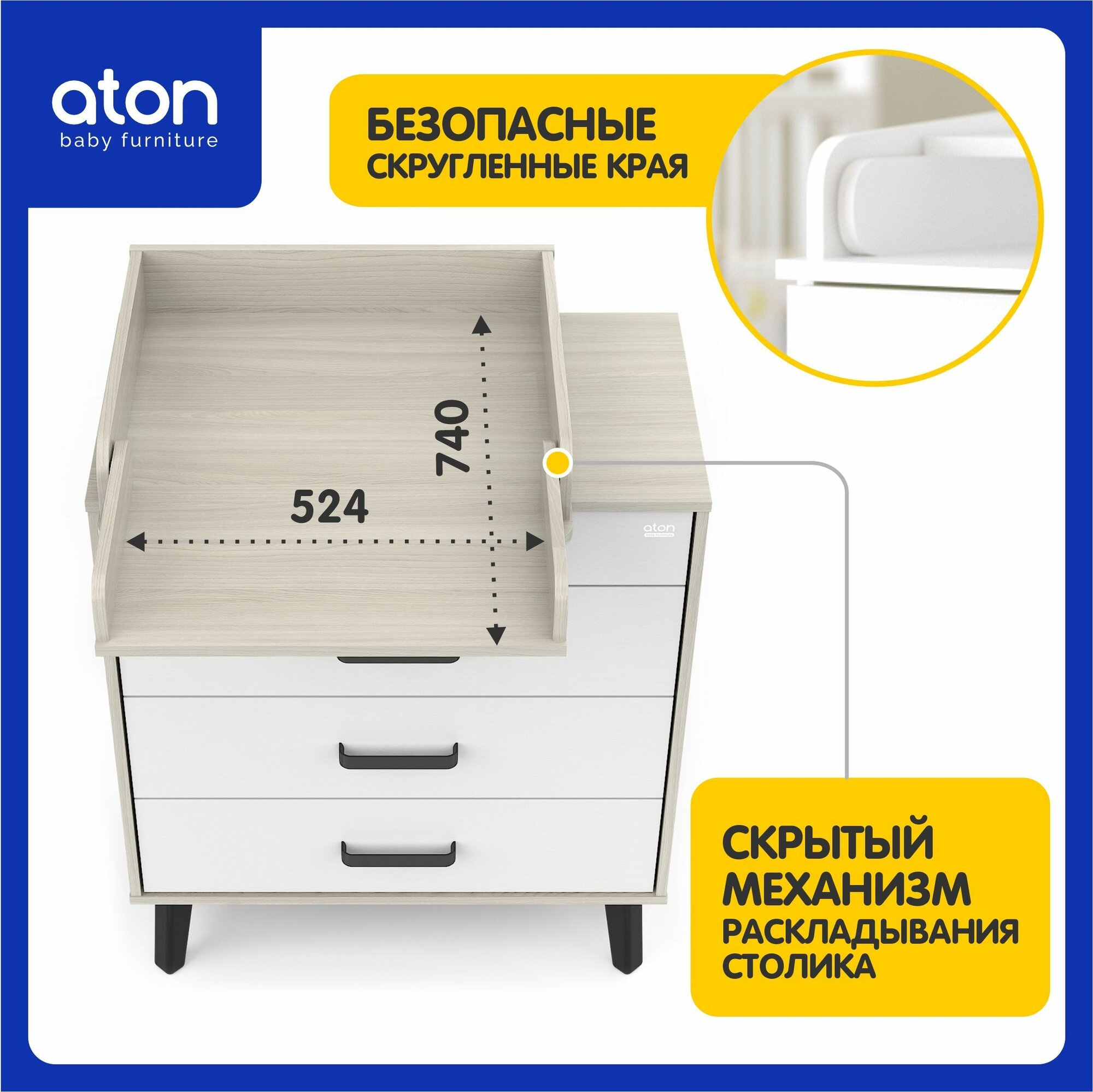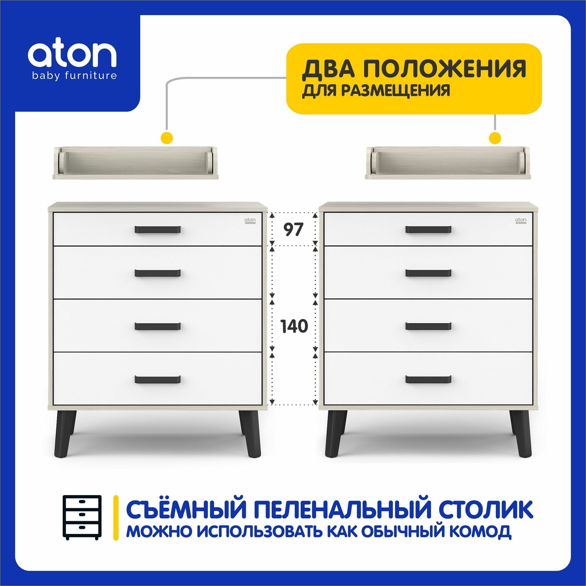 СохранитьКомод для новорожденных Gall Nero, шимо светлый/белый/черные ножки, Aton, со съёмным пеленальным столиком, 102х80х56 см интересное: