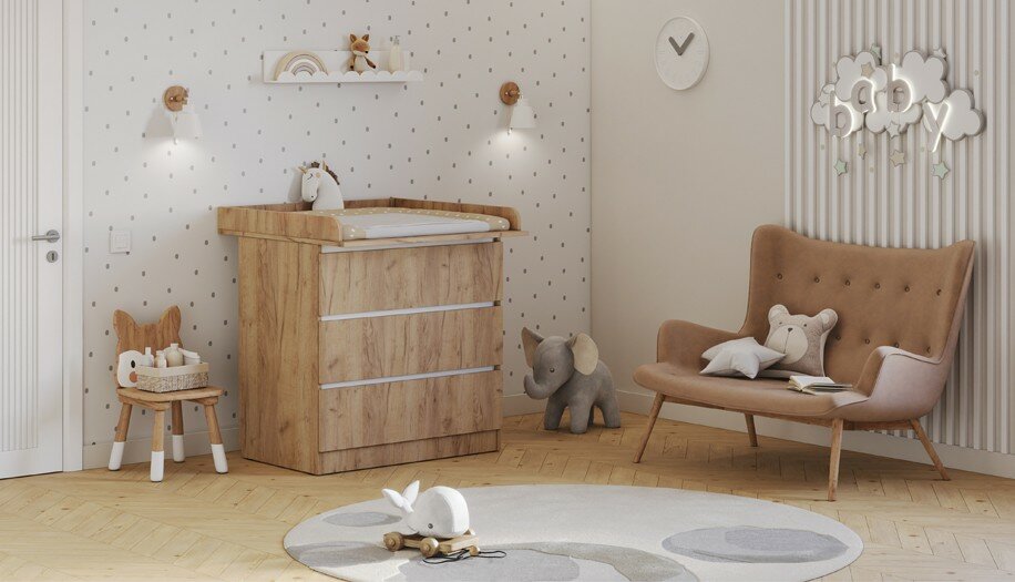 Комод Polini kids Simple 1980, дуб крафт золотой (с белыми вставками) интересное: