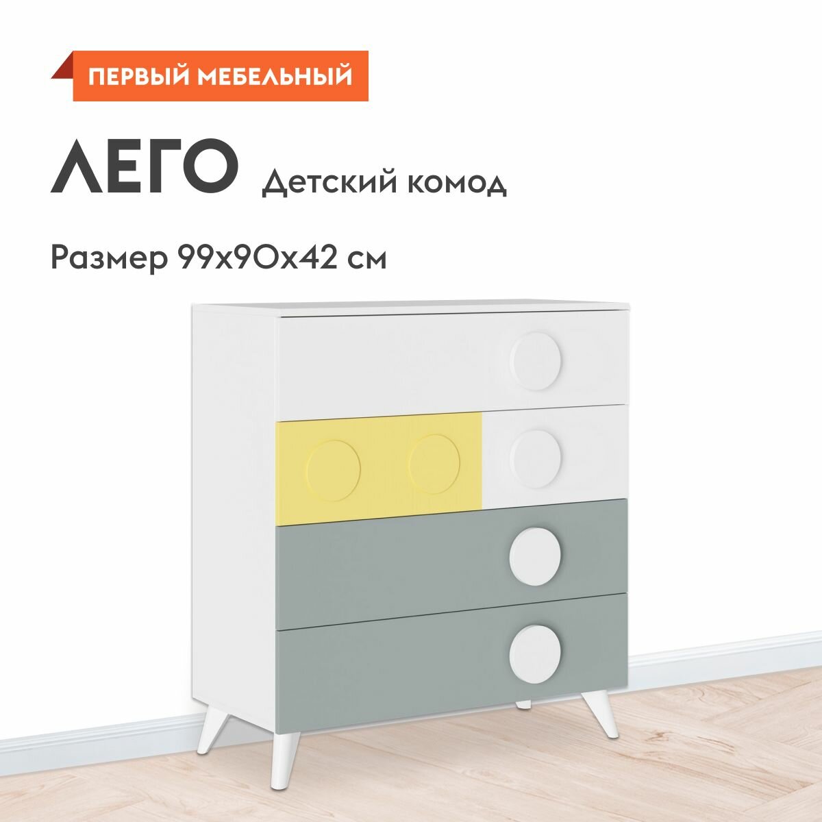 Детский комод для одежды Лего с ящиками, 90х42х99 см, Белый / Грин Грей Софт / Солнечно-желтый интересное: