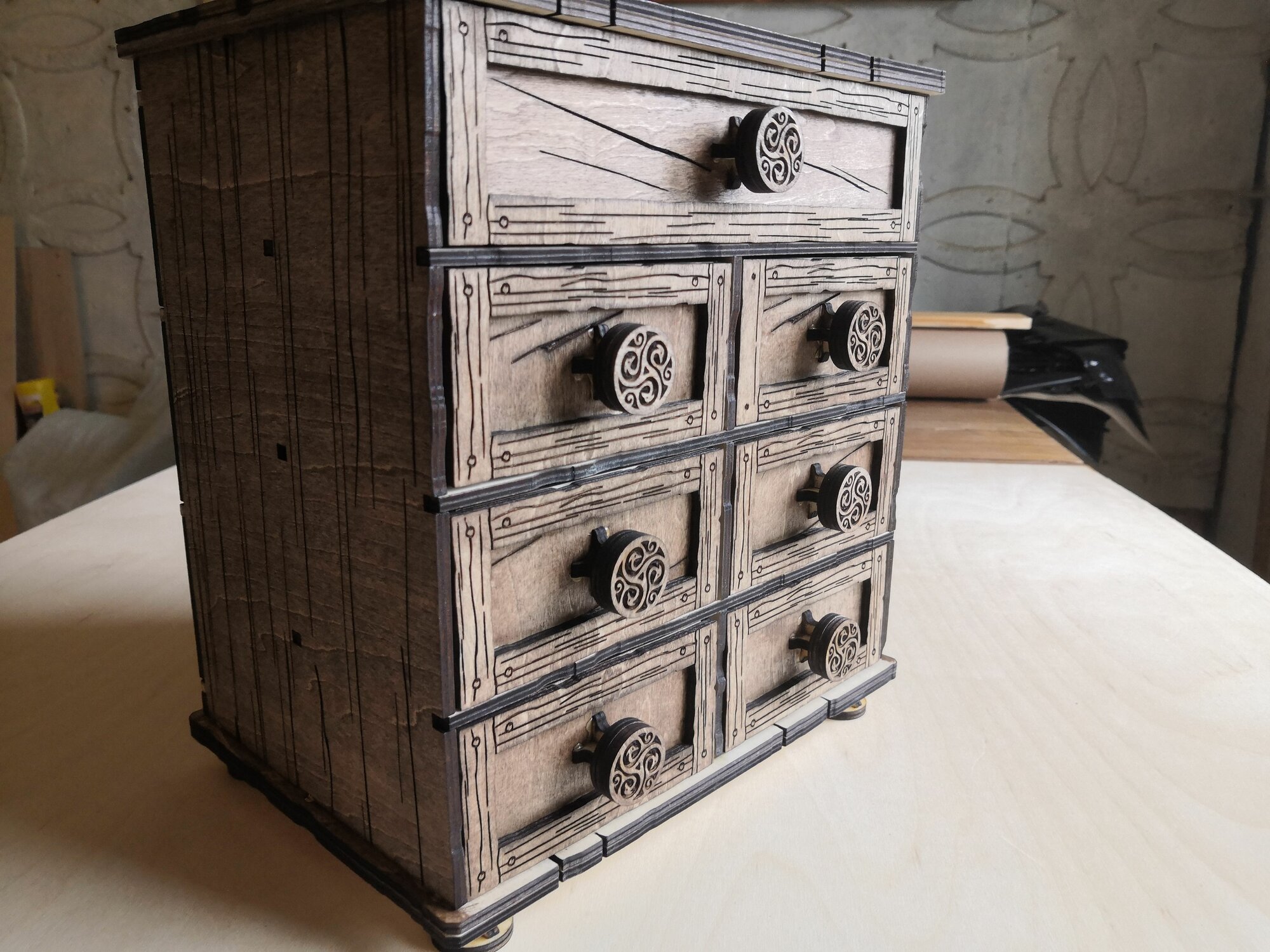 Купить Мини-комод, 7 выдвижных ящиков, фанера, дерево, цвет "комодик", 23x27x17 см, 1.6 кг
