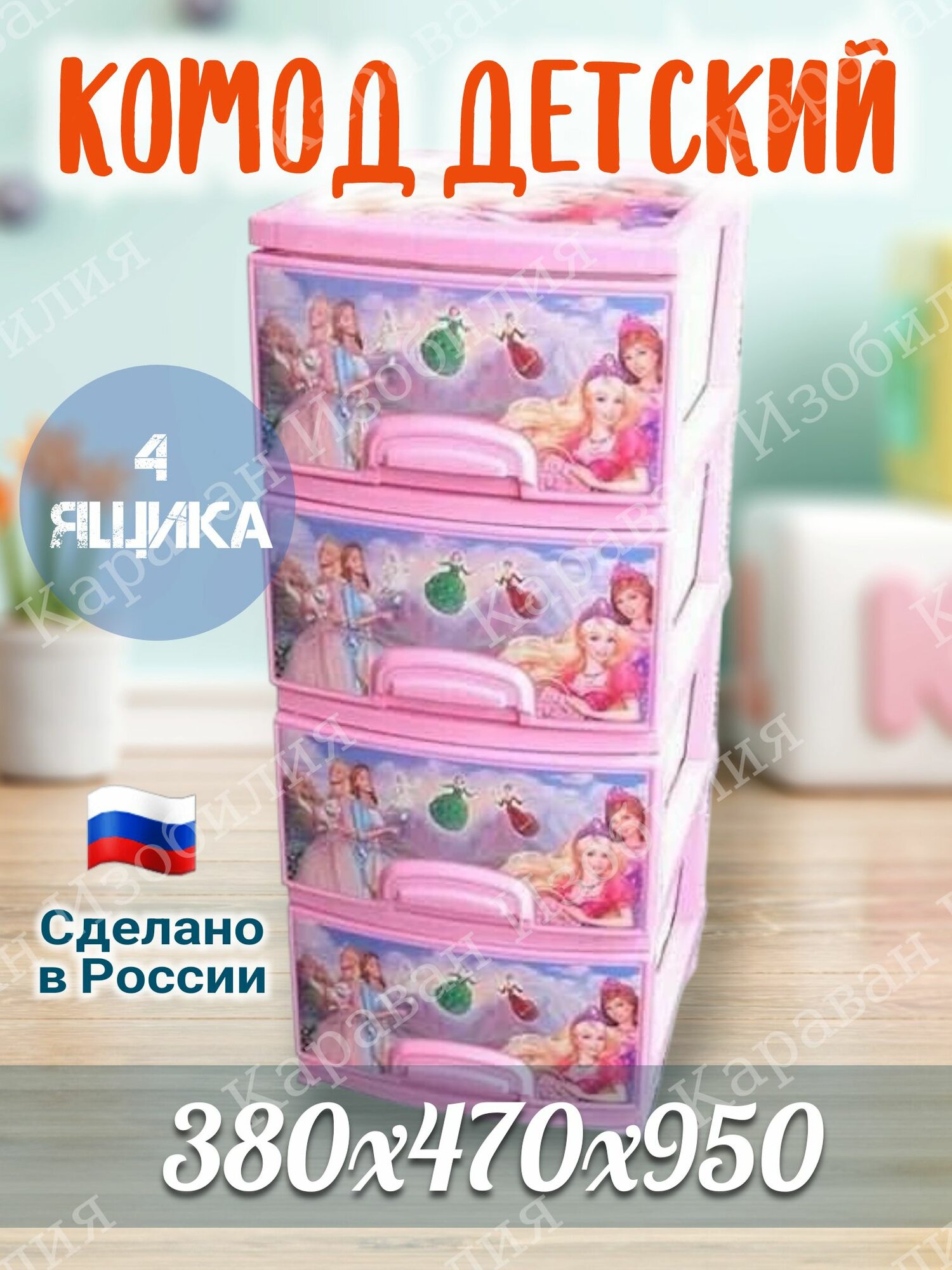 Купить Яркий комод детский комод "Принцесса" (розовый) 380*470*950 мм, 4 вместительных ящика