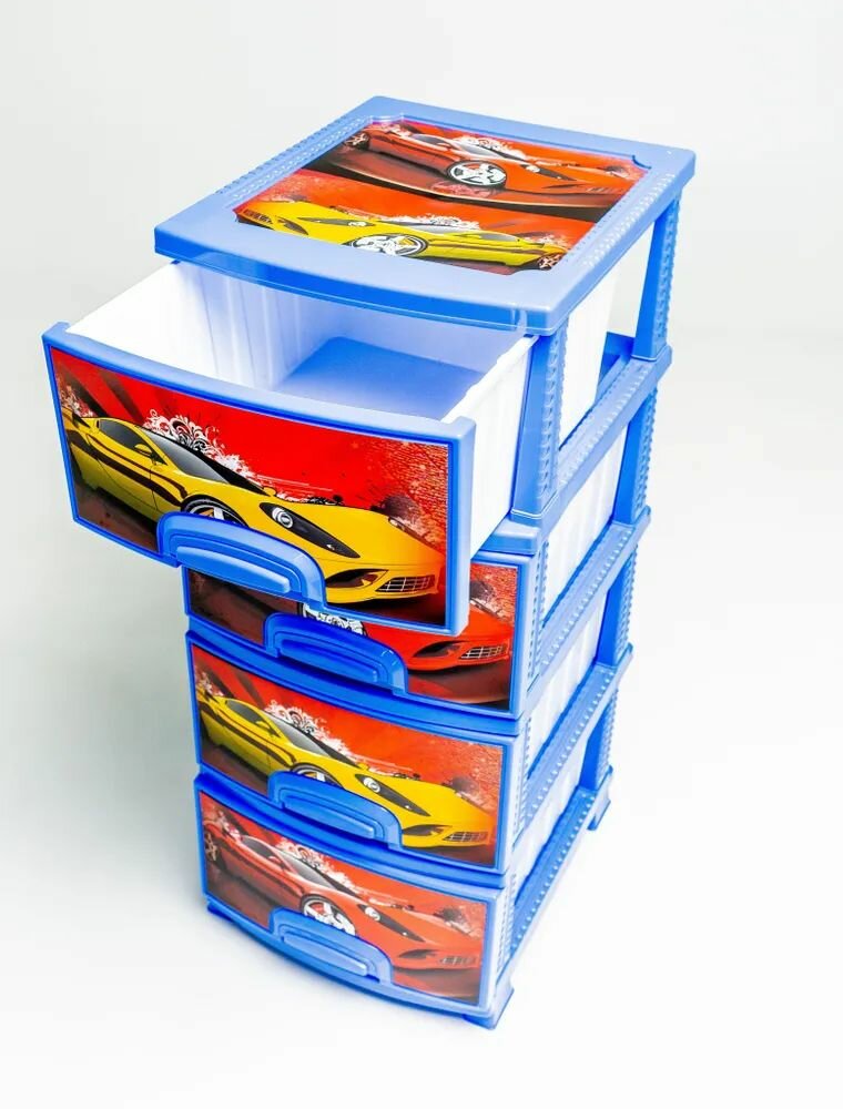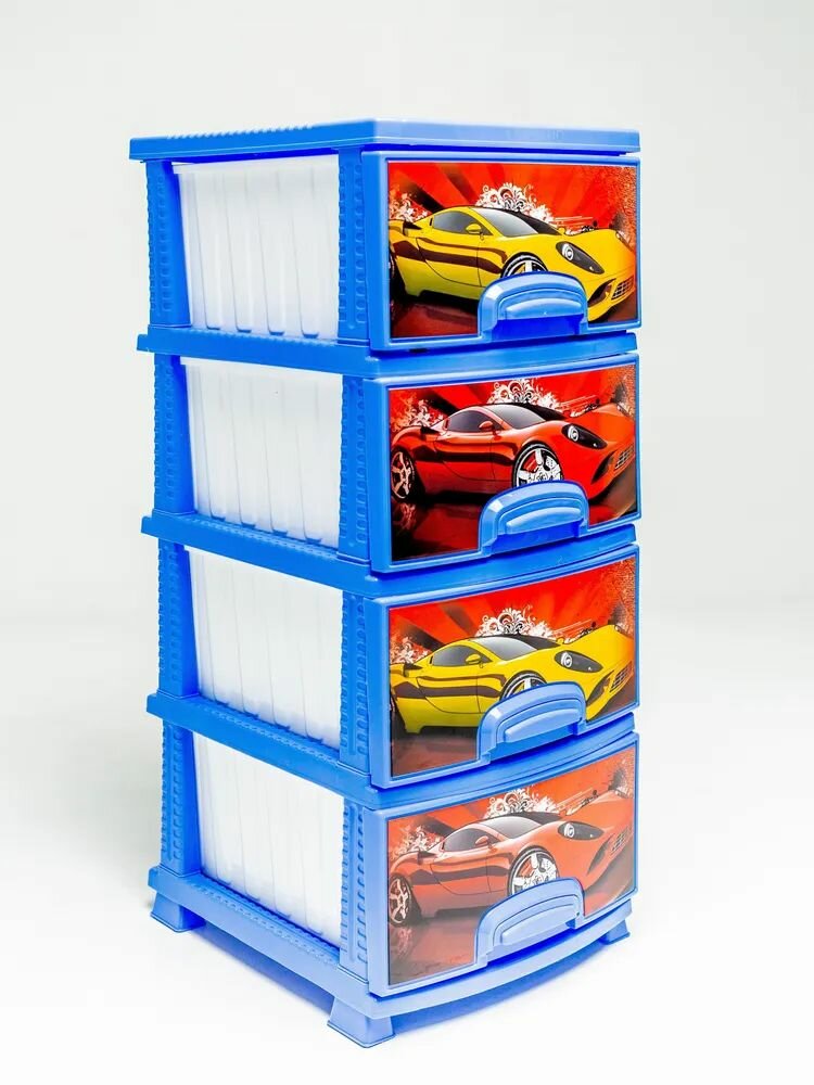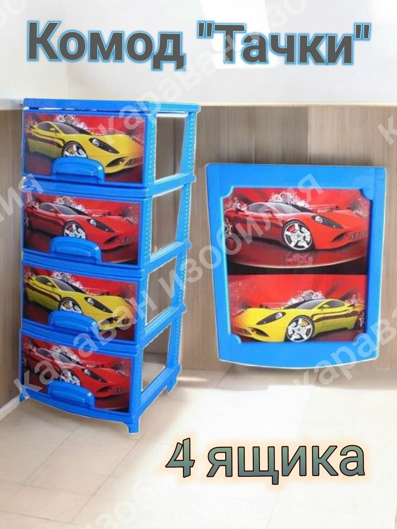 Купить Яркий комод детский комод "Тачки" (голубой) 380*470*950 мм, 4 вместительных ящика
