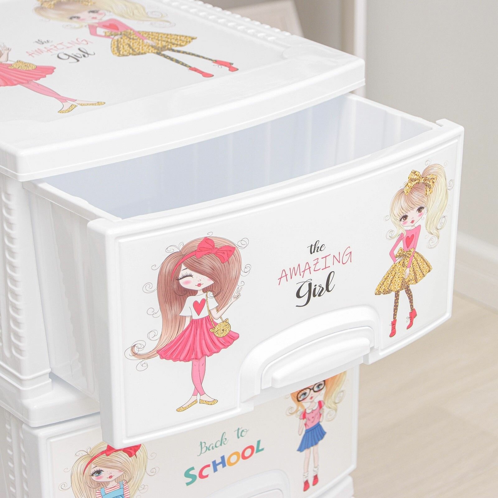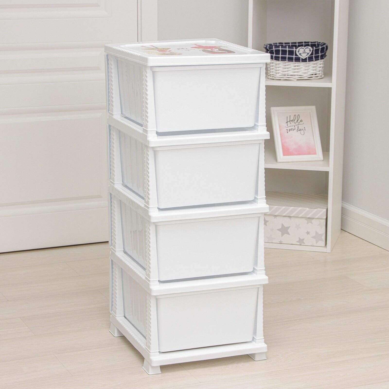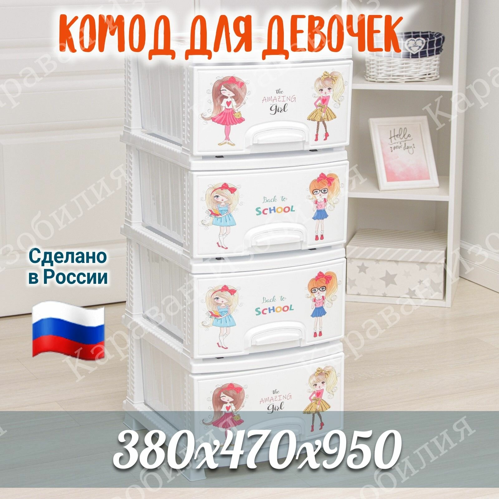 Купить Яркий комод детский "Девчонки" (белый) 380*470*950 мм, 4 вместительных ящика