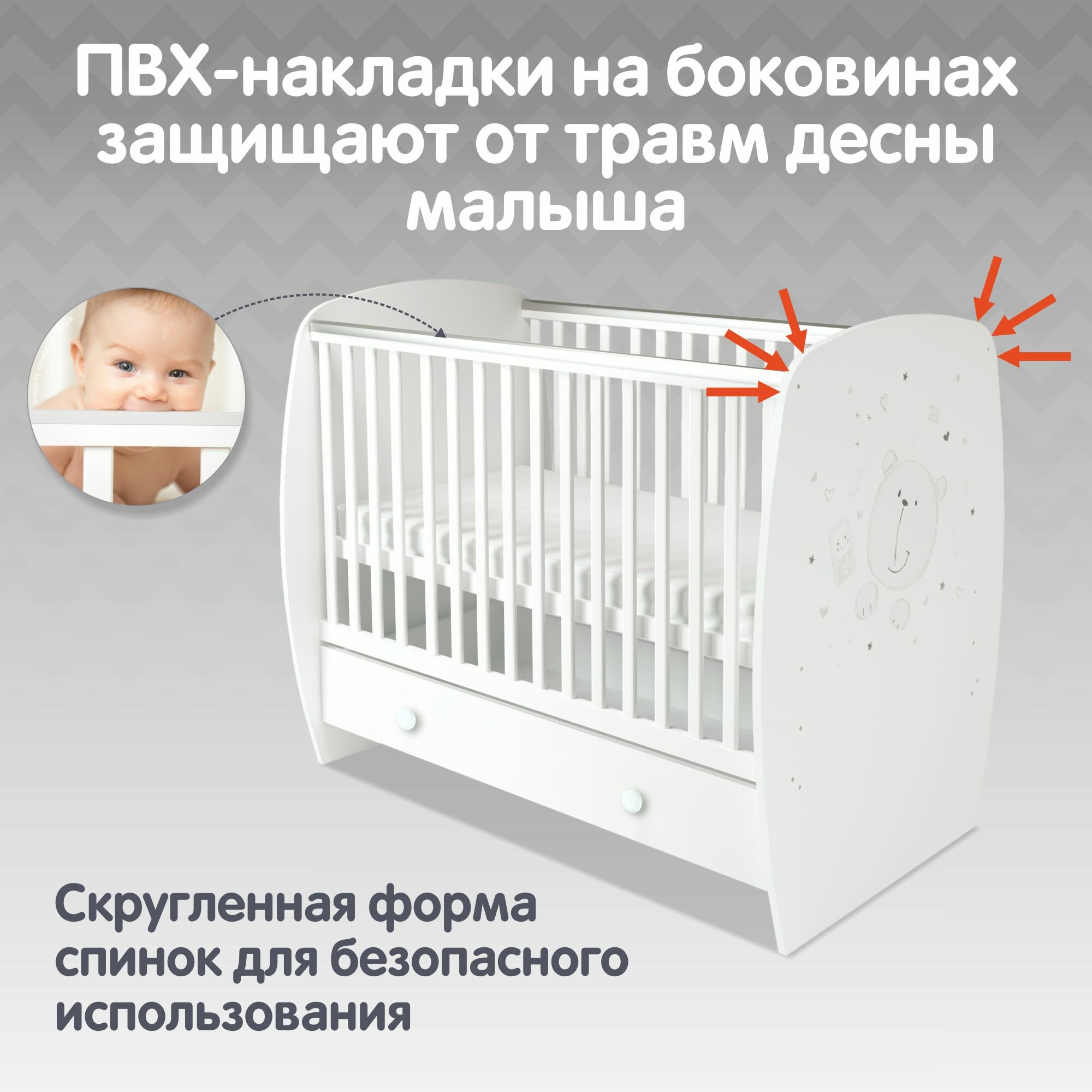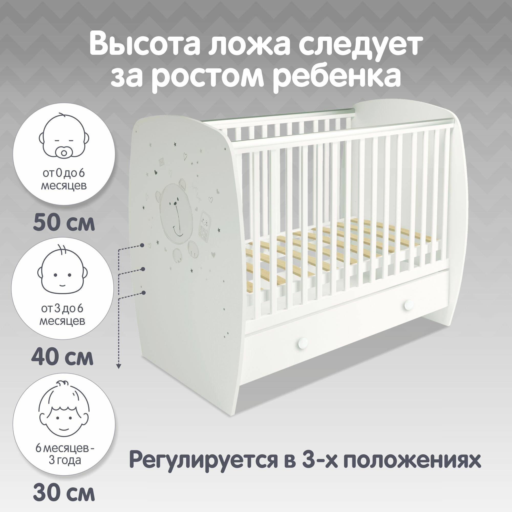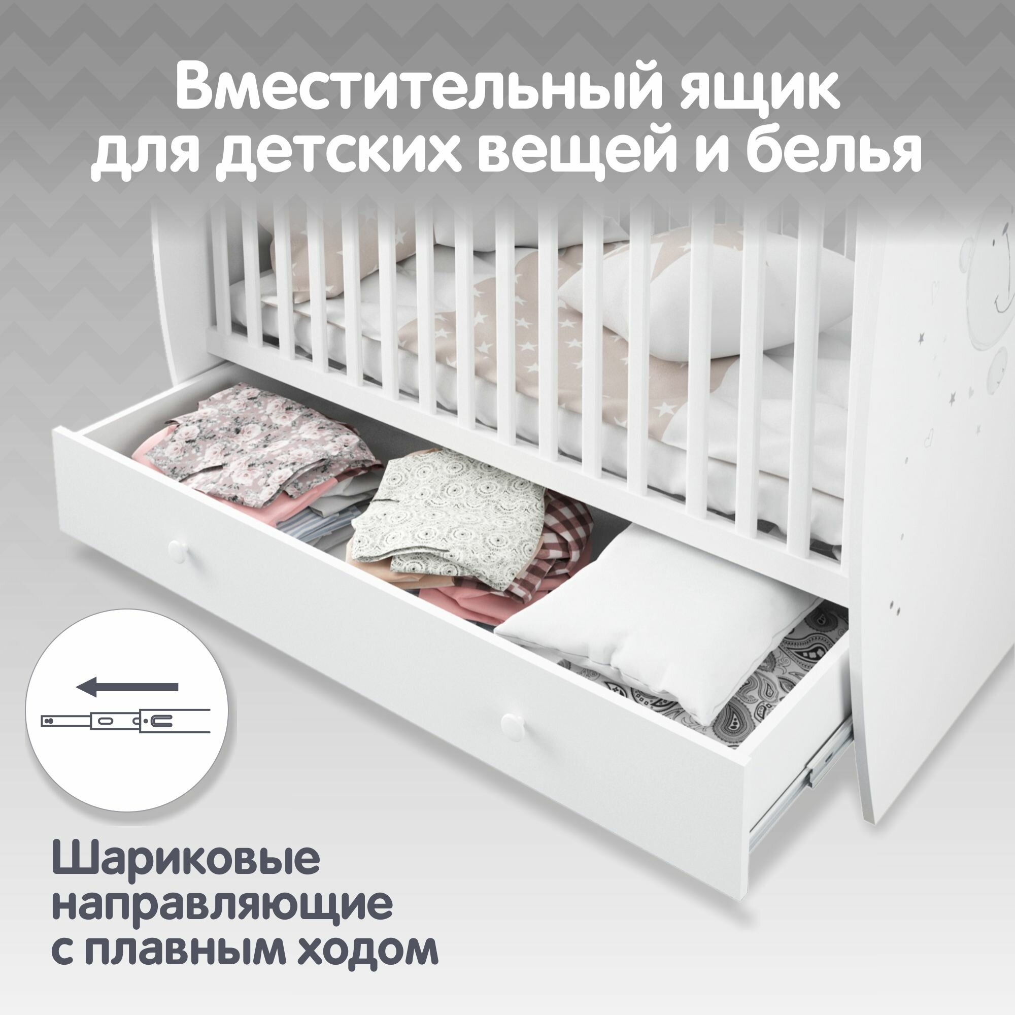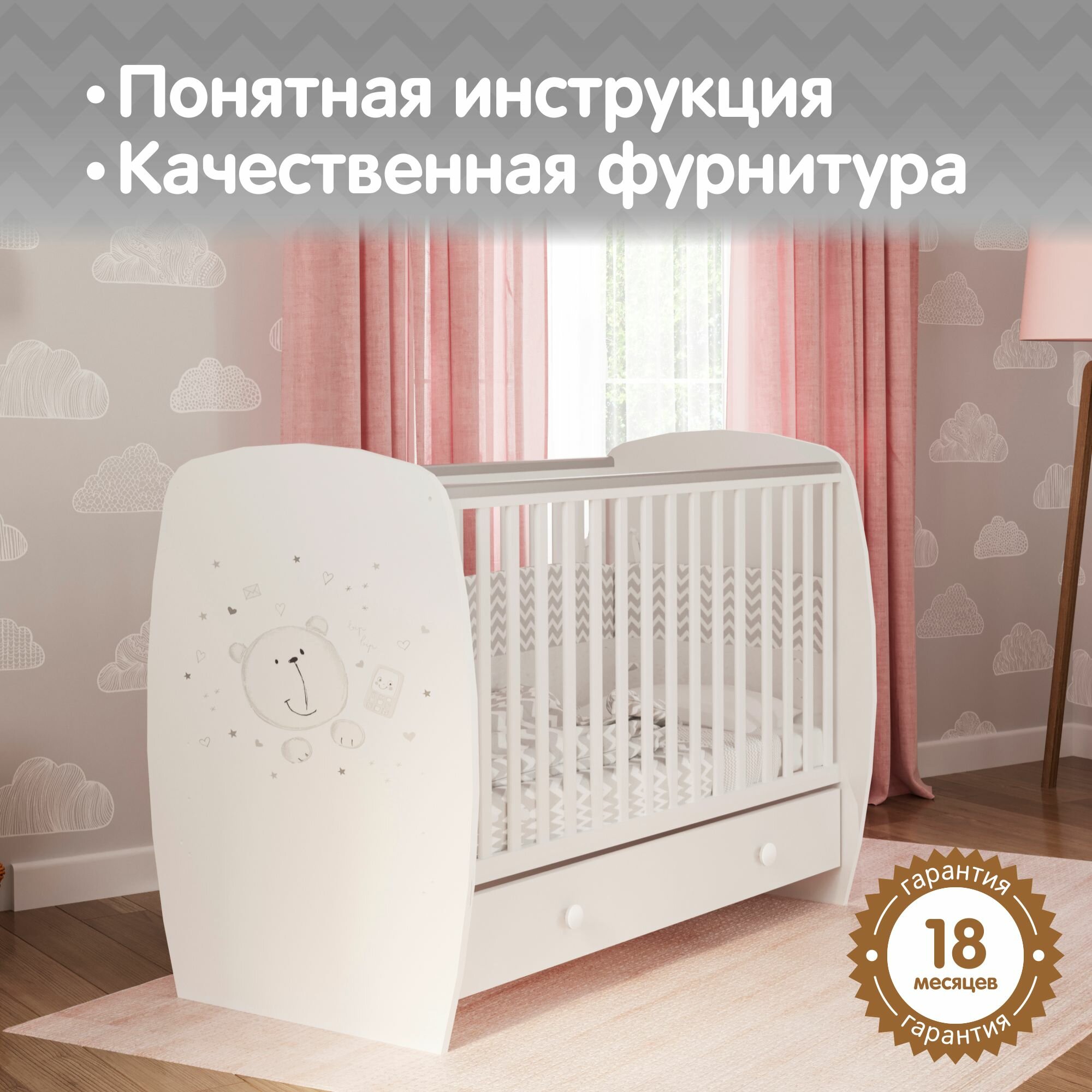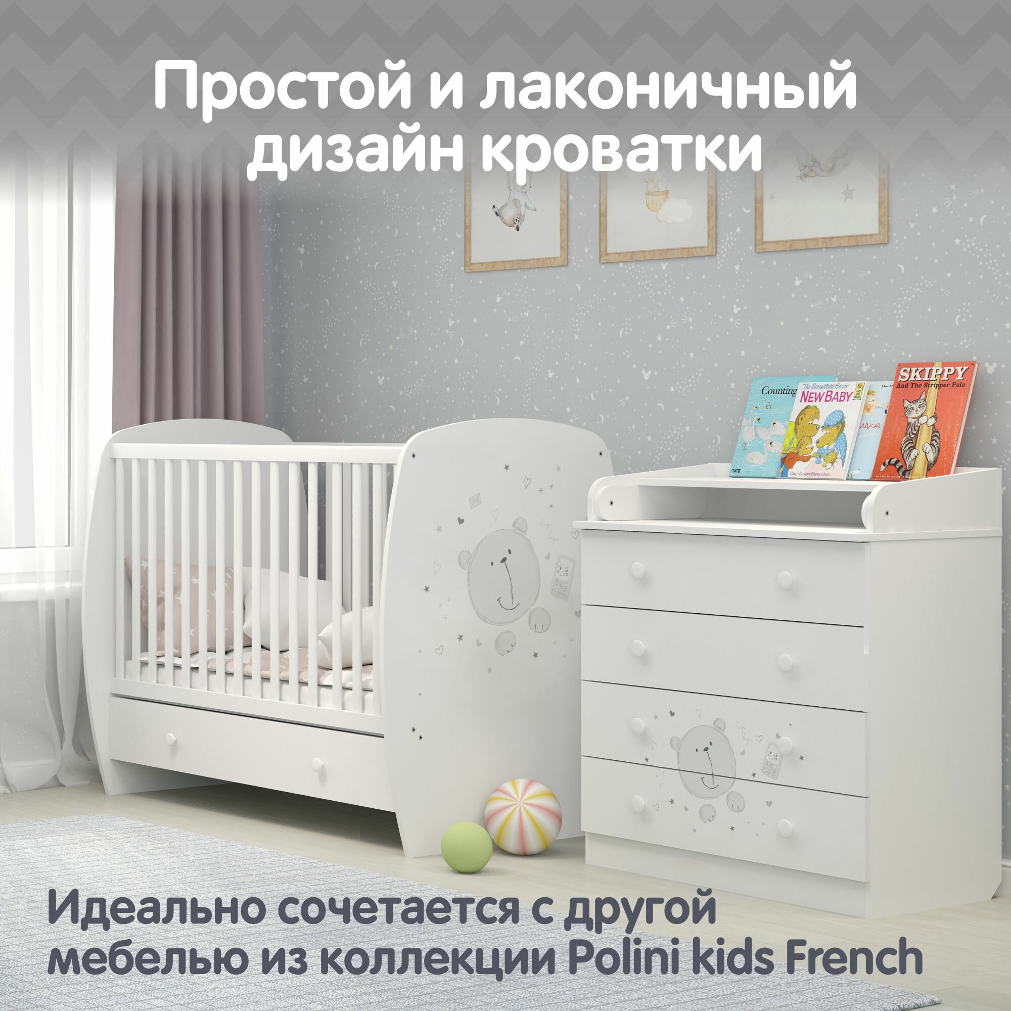 Кроватка Polini French 710, Teddy, с ящиком, белый интересное: