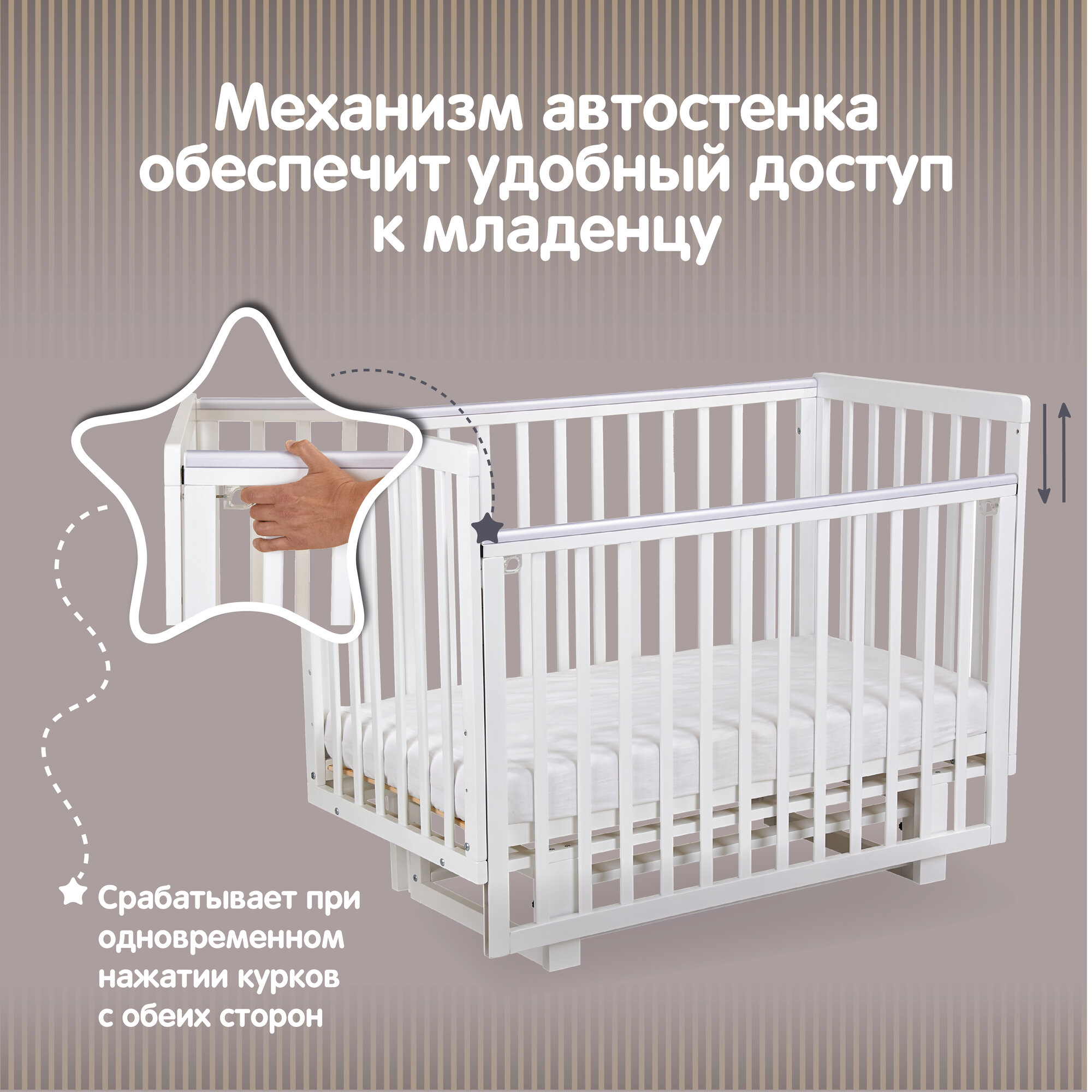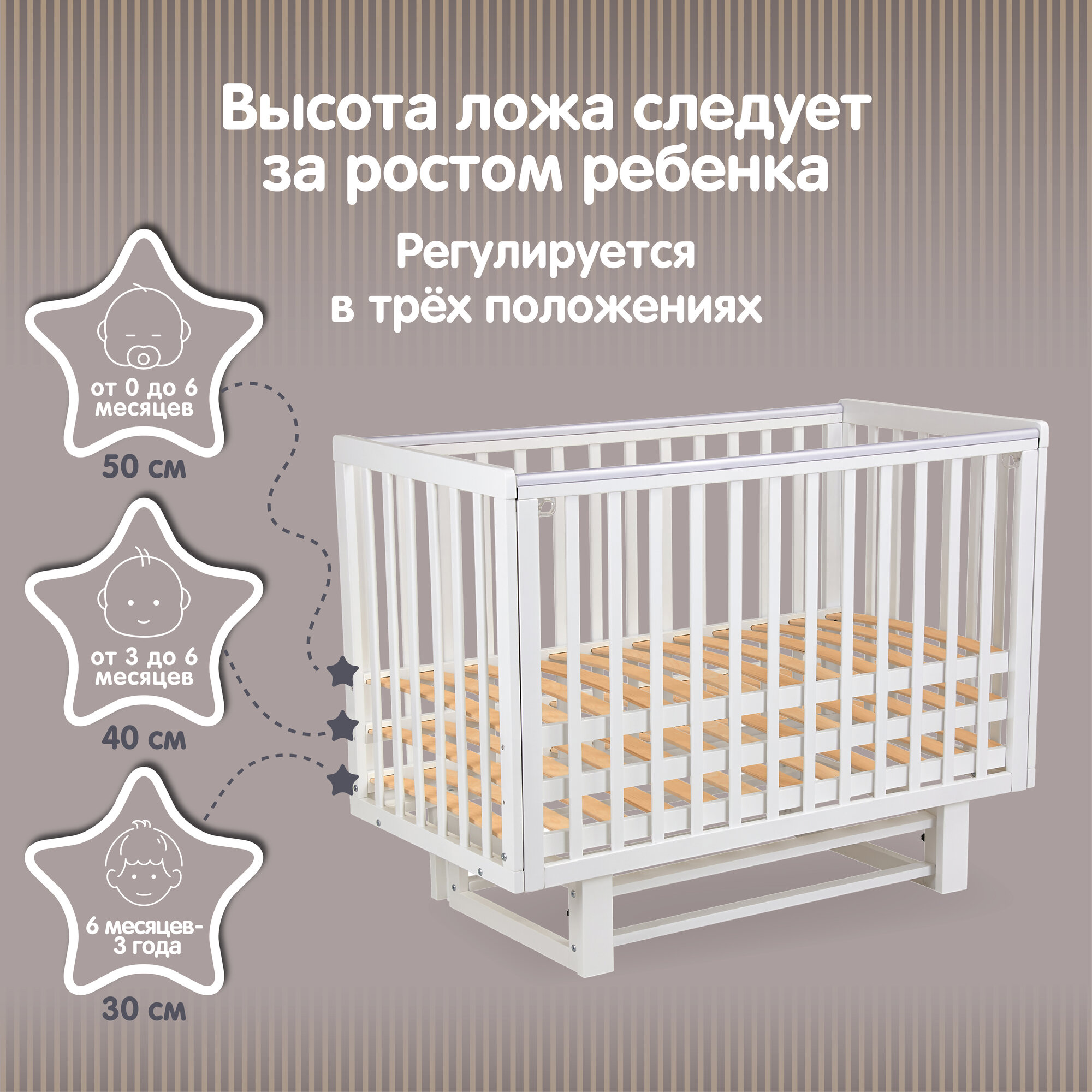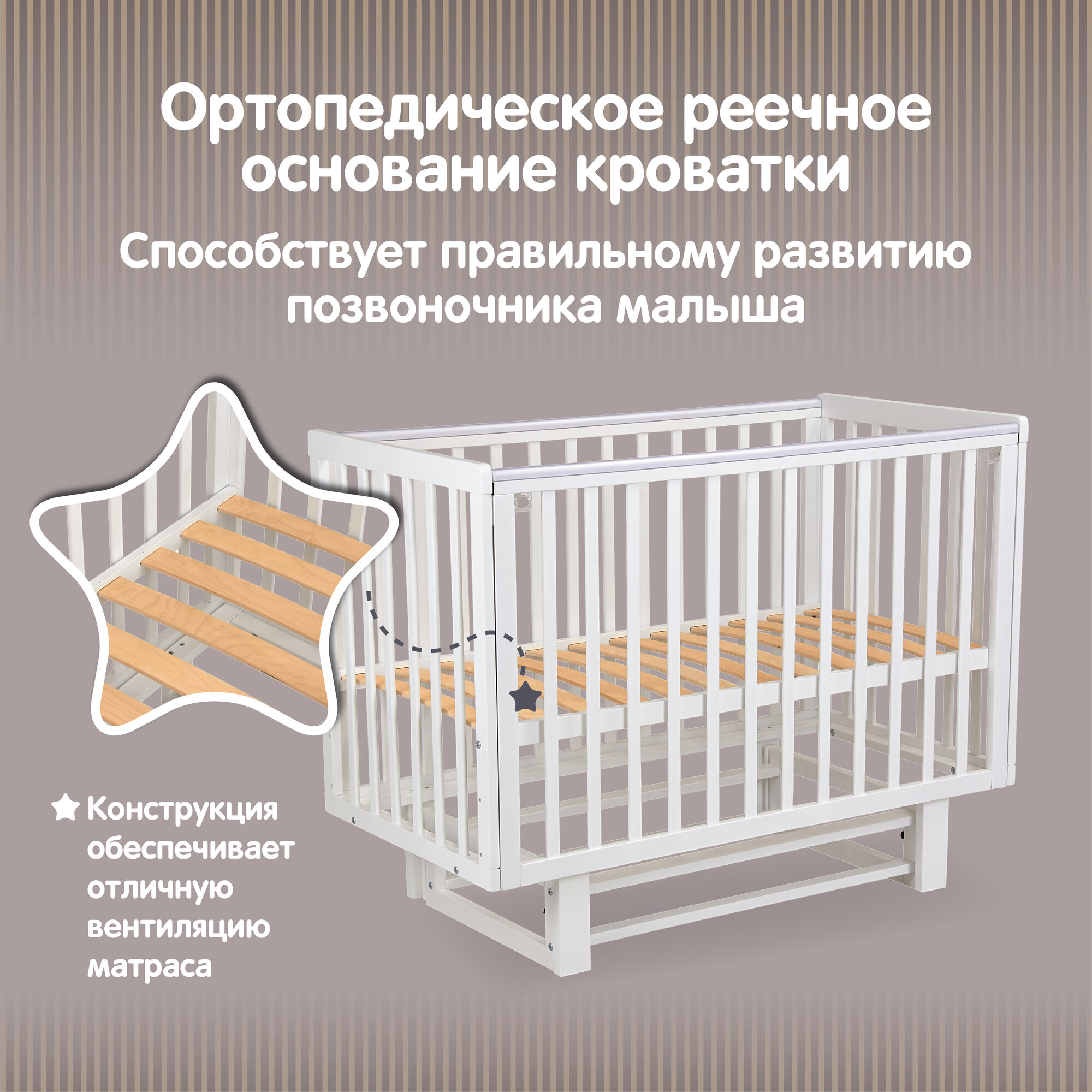 ВДК Детская кровать-трансформер «Слоник» с поперечным маятником, цвет белый