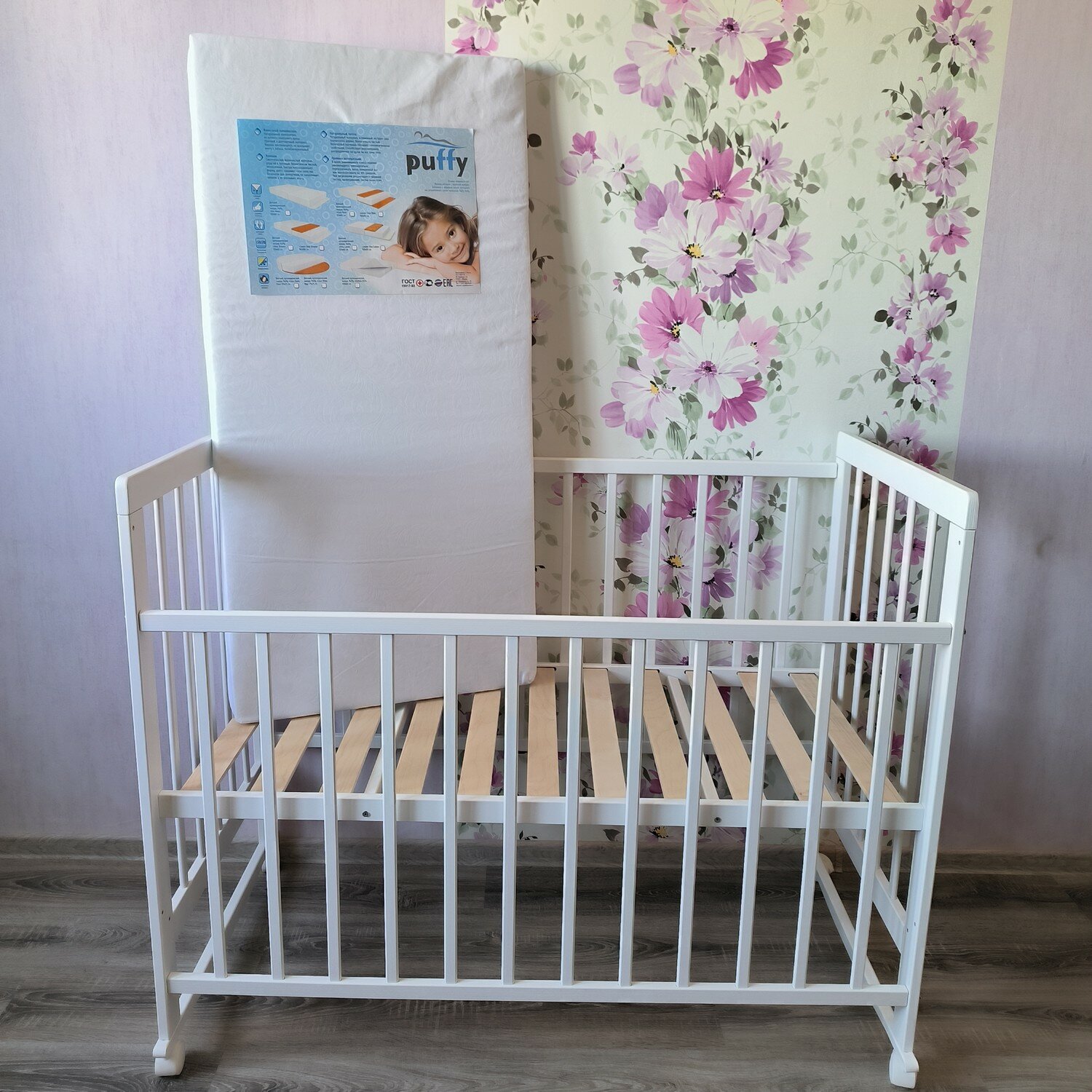 Кроватка Kristi колесо качалка белый + матрас ECO интересное: