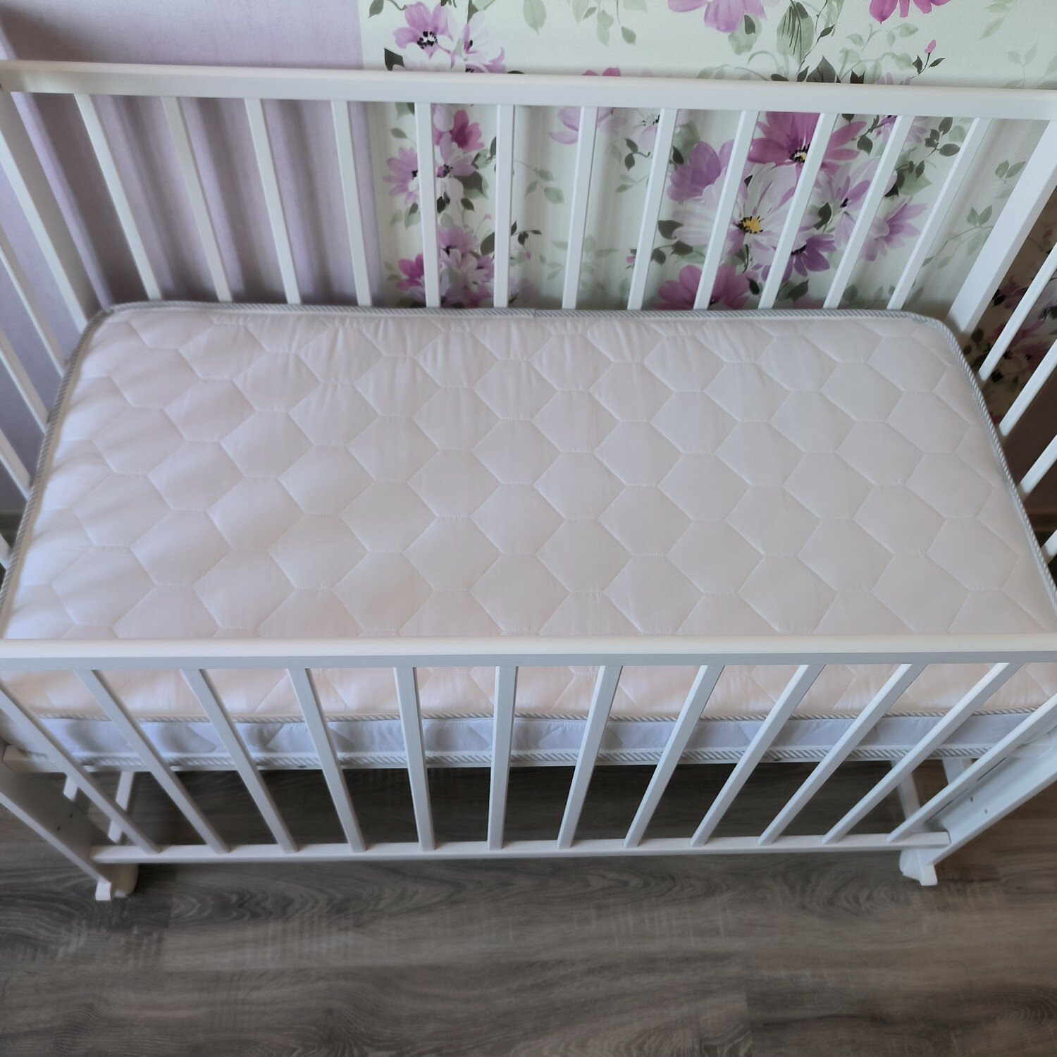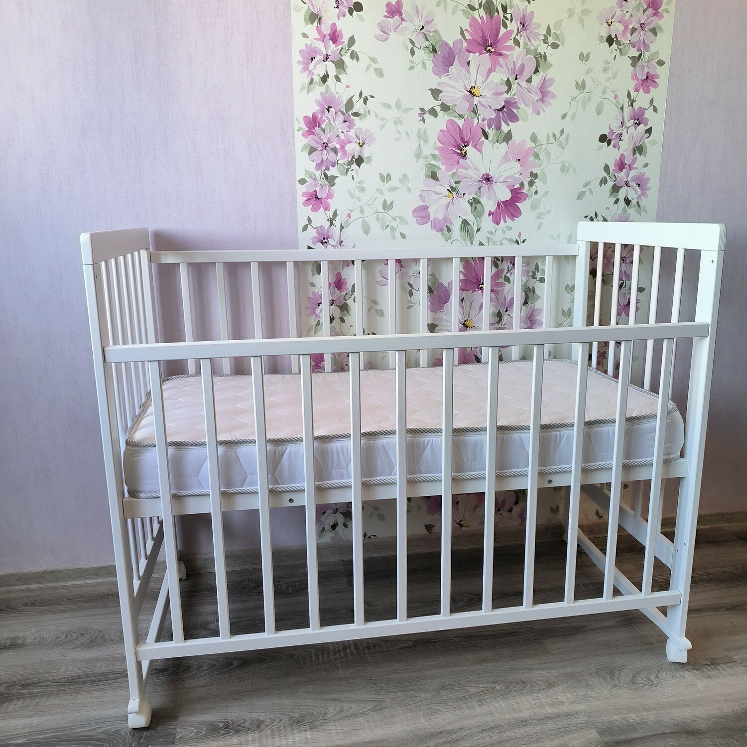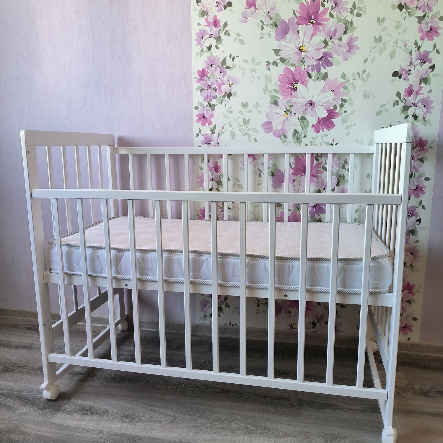 Кроватка Kristi колесо качалка белый + матрас ЭКО латекс