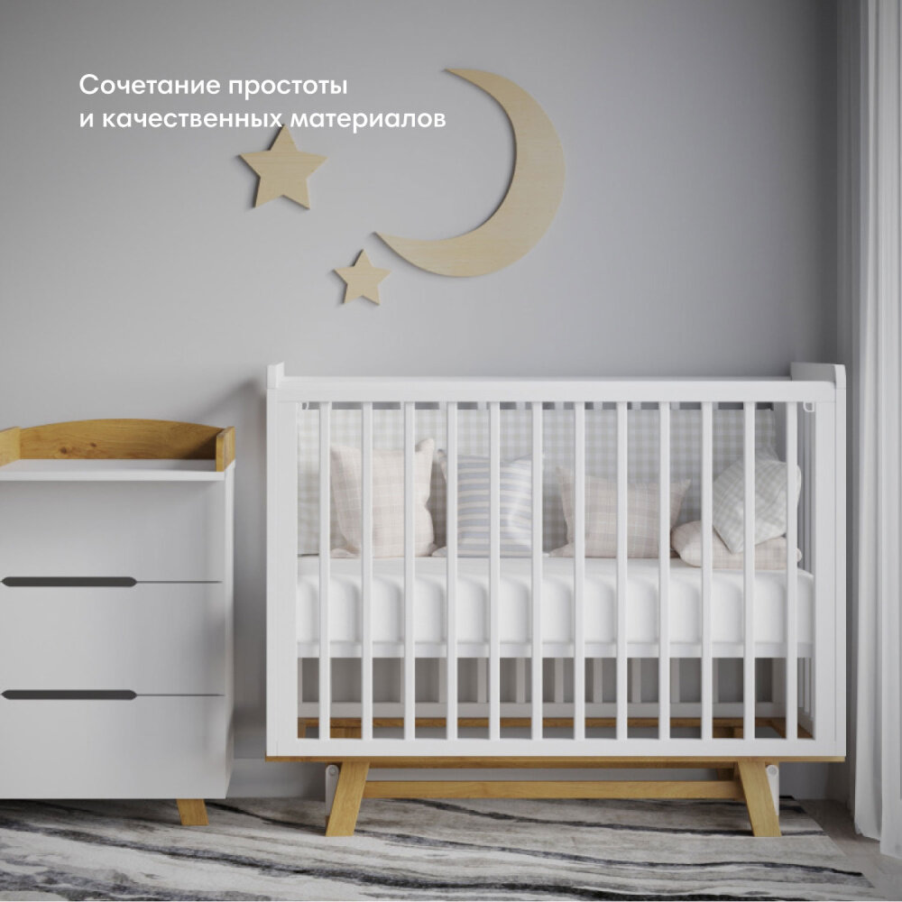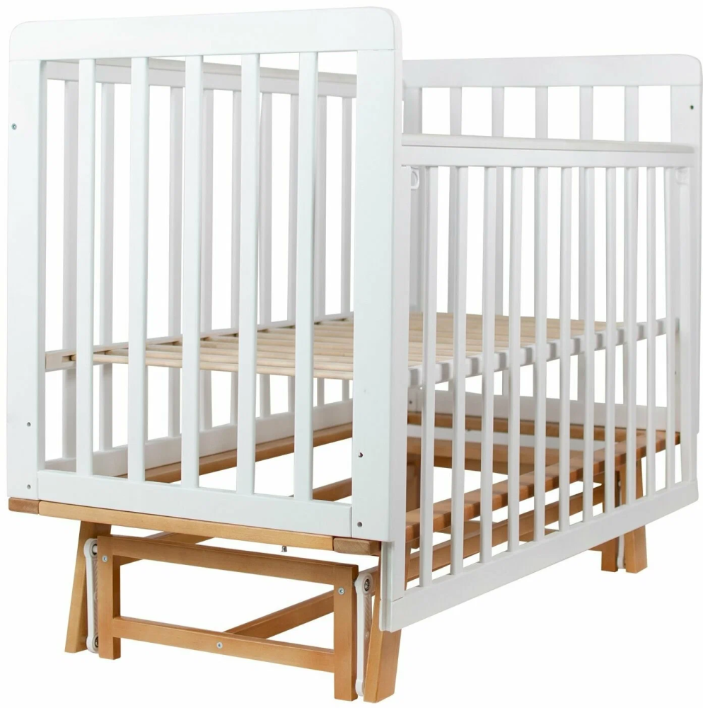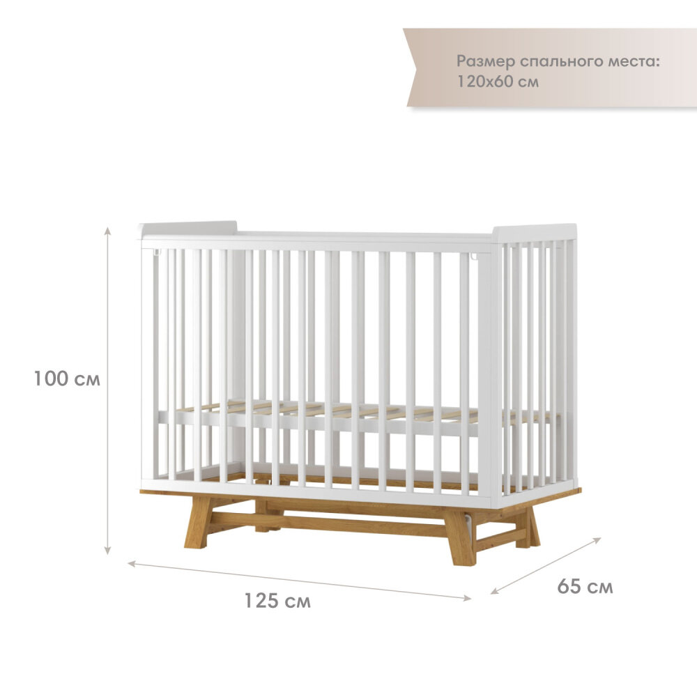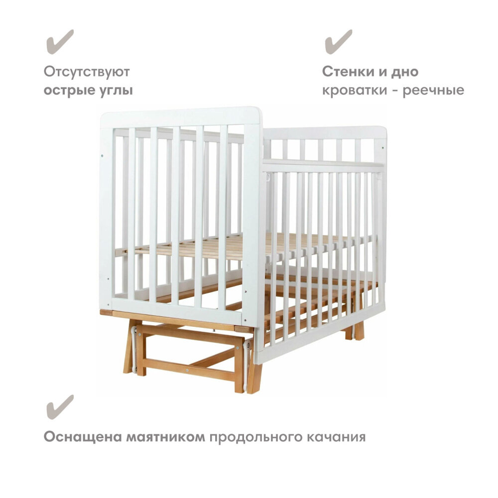 Кровать для новорожденного с маятником OLANT BABY, Скаген ЕССО, 120х60 см, белый/бук интересное: