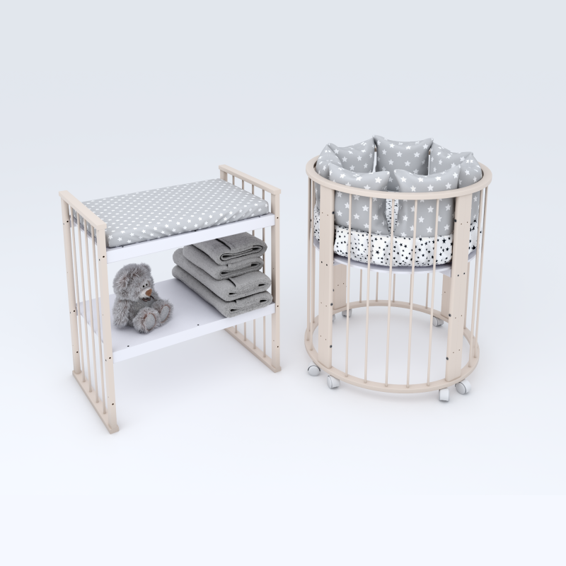 Детская кроватка трансформер круглая/овальная Зайка 8 в 1, бежевый интересное: