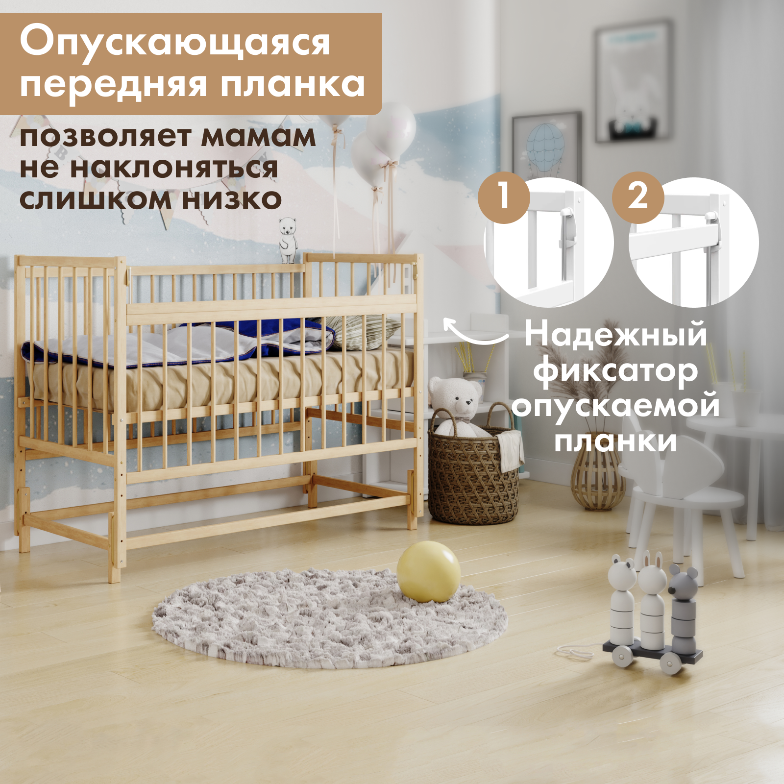 Детская кроватка для новорожденного SoftSpace Air, 120х60 см, Береза, цвет Натуральный