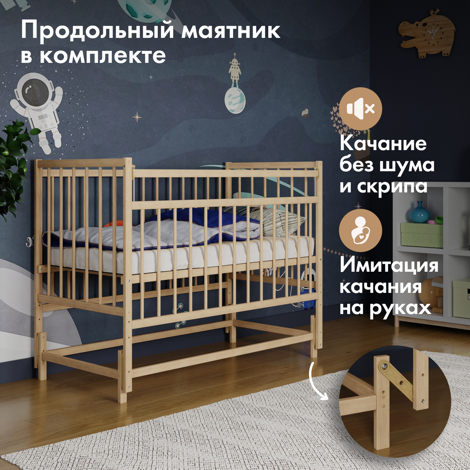 Детская кроватка для новорожденного SoftSpace Air прямоугольная, 120х60 см, Береза, цвет Натуральный, с маятником интересное: