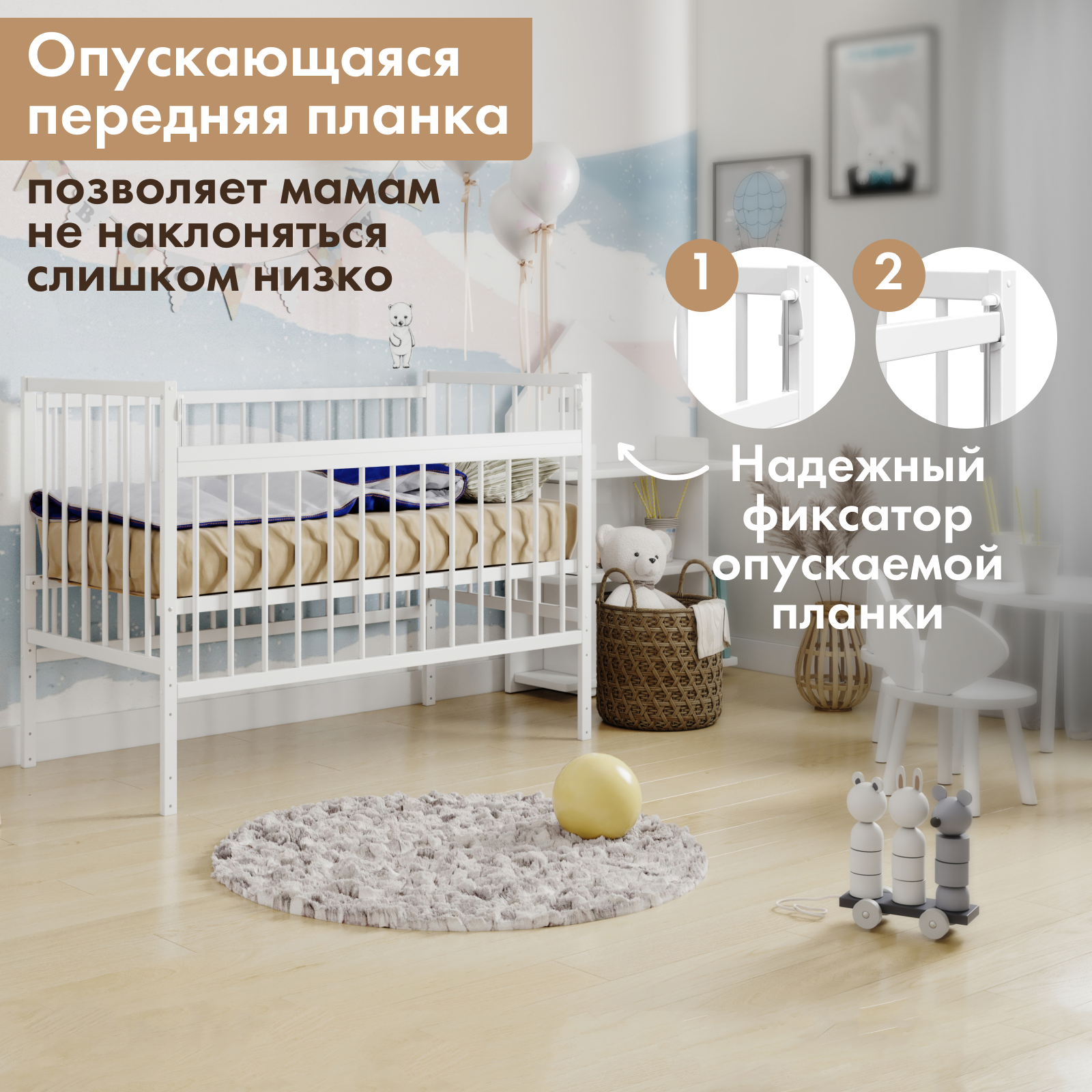 Детская кроватка для новорожденного SoftSpace Air, 120х60 см, Береза, цвет Белый интересное: