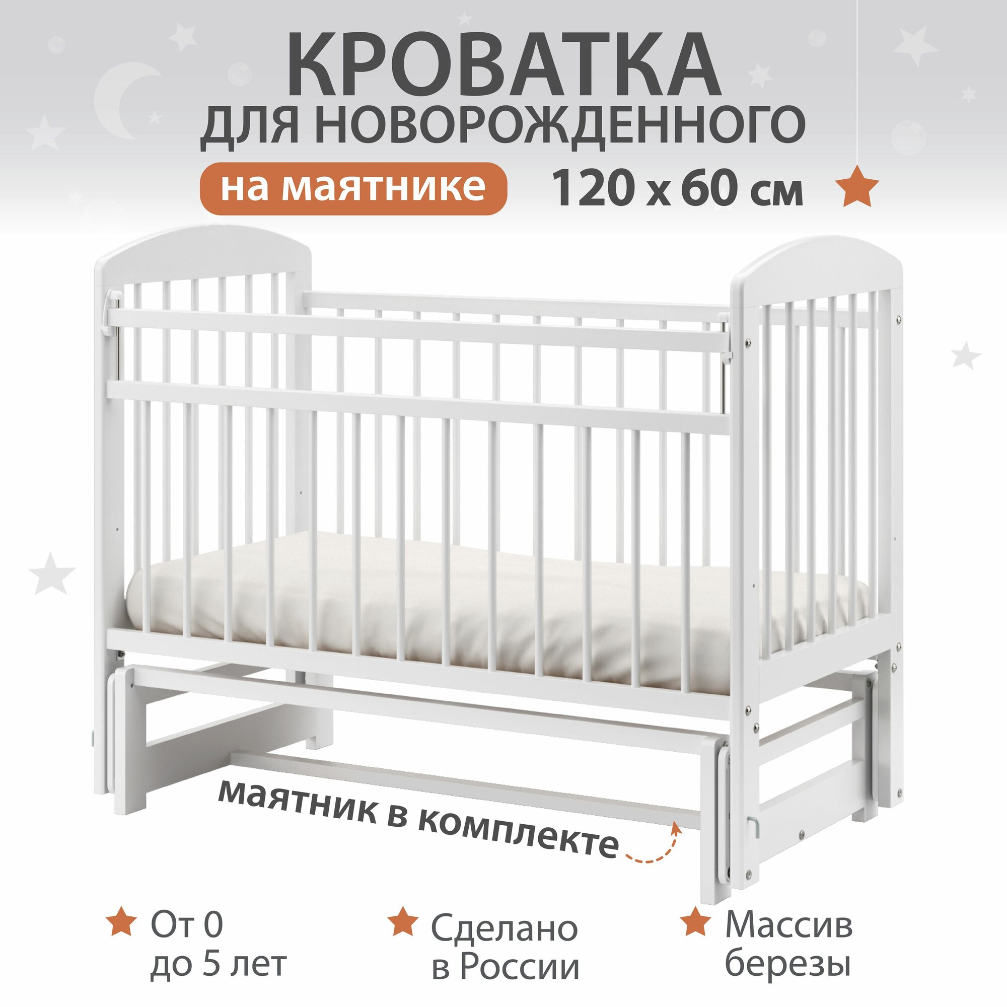 Купить Кроватка для новорожденных с маятником 120х60 см Береза, цвет Белый
