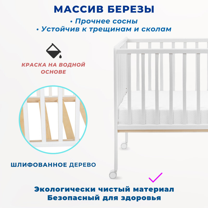 Детская кроватка для новорожденных Babyroom Мишка на колесах, цвет белый интересное: