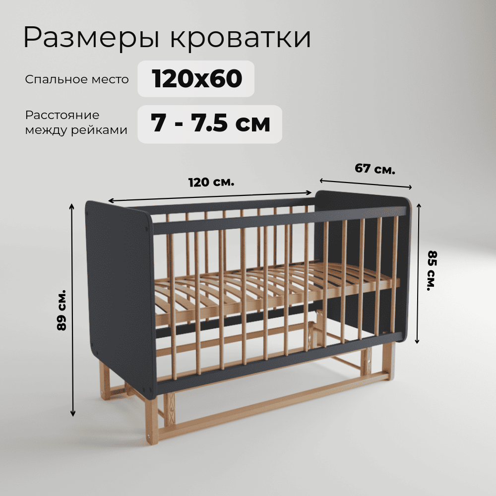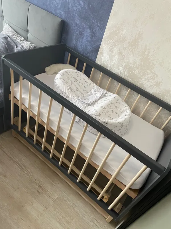 СохранитьКроватка ONESTA W&B для новорожденных, приставная, маятник в комплекте, берёза/МДФ, графит интересное: