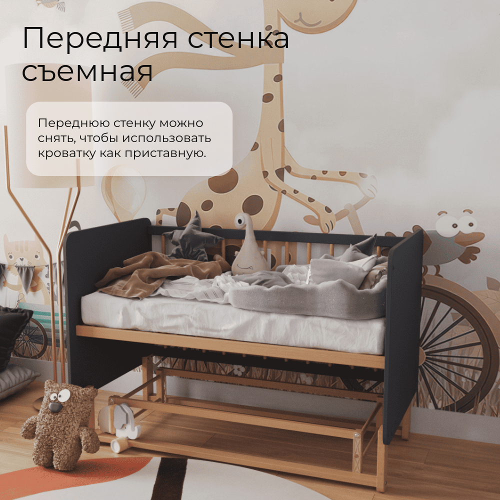 Купить Кроватка ONESTA W&B для новорожденных, приставная, маятник в комплекте, берёза/МДФ, графит