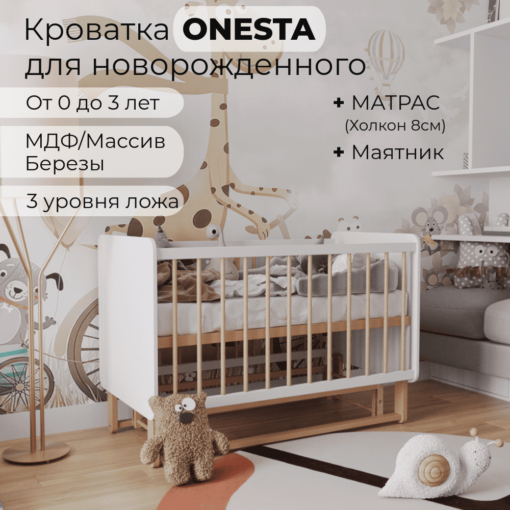 Кроватка для новорожденных, приставная, ONESTA, Маятниковое качание, Матрас в комплекте, цвет: белый интересное: