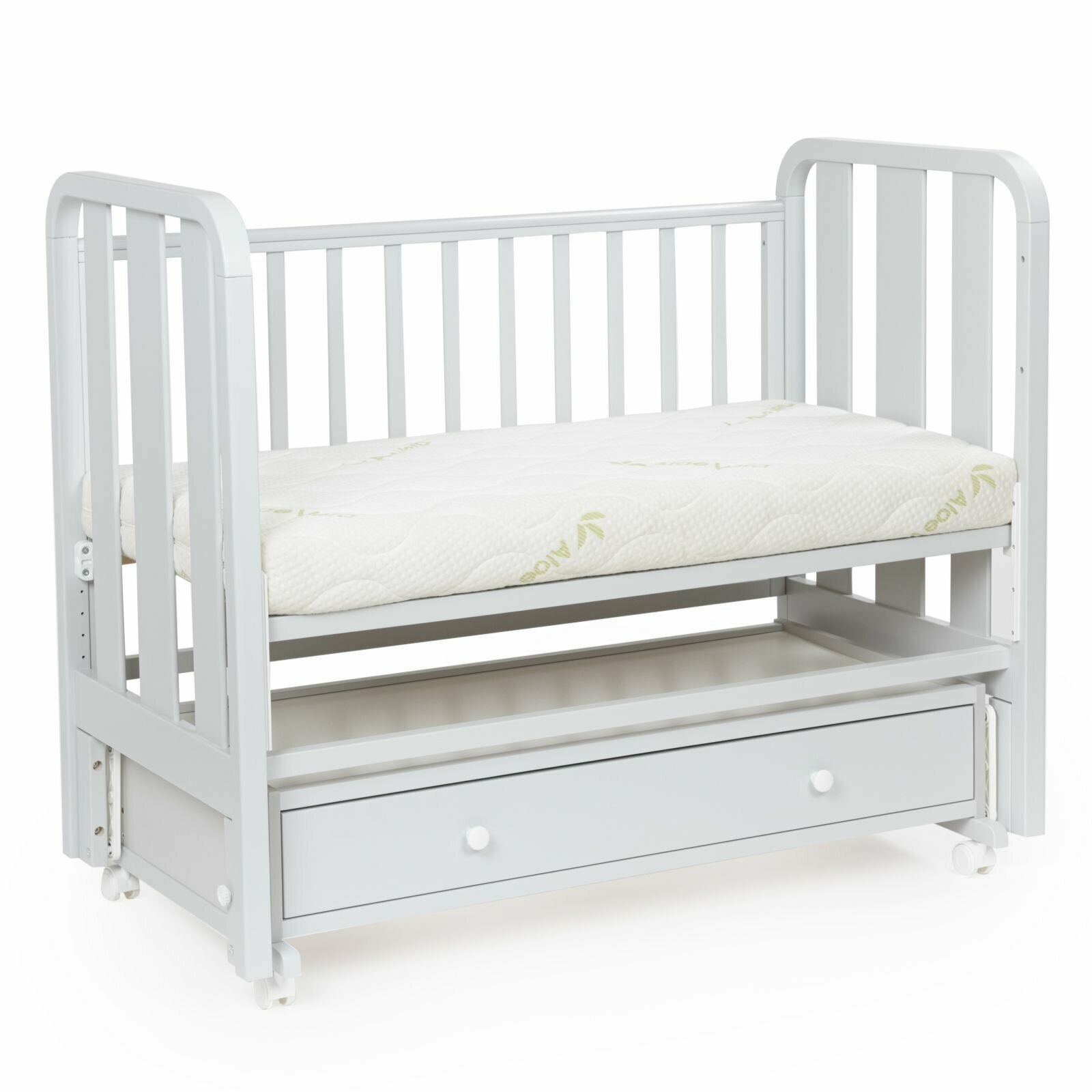 Кроватка для новорожденных BEBIZARO HEIRLOOM GRAY Маятник универсальный с ящиком (ШхГхВ) 128х69х109 см интересное: