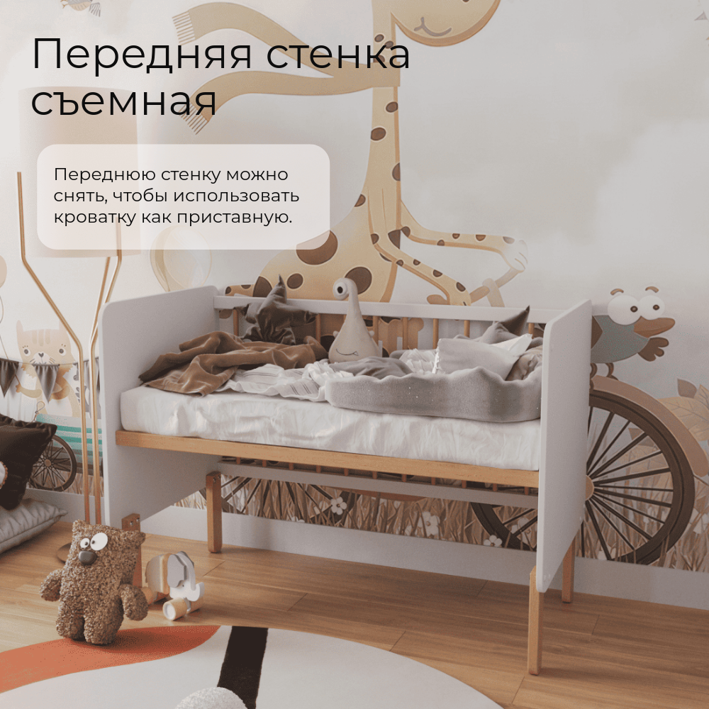 Кроватка детская Polini kids Porto 1300, белый-дуб каменный