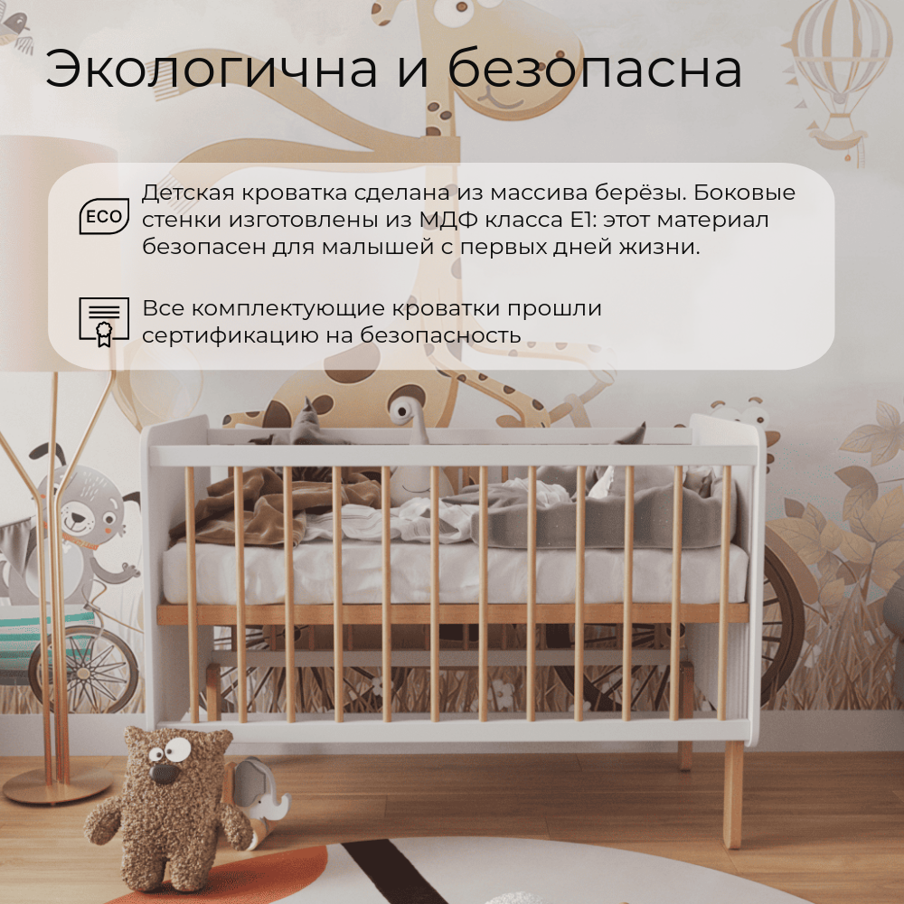 Кроватка ONESTA W&B, для новорожденных, ортопедическая, берёза/МДФ, белая интересное: