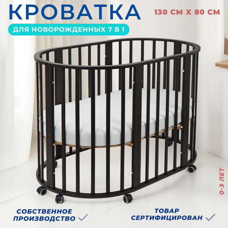 Купить Детская кроватка для новорожденных Babyroom Мишка 7 в 1, круглая/овальная, цвет венге
