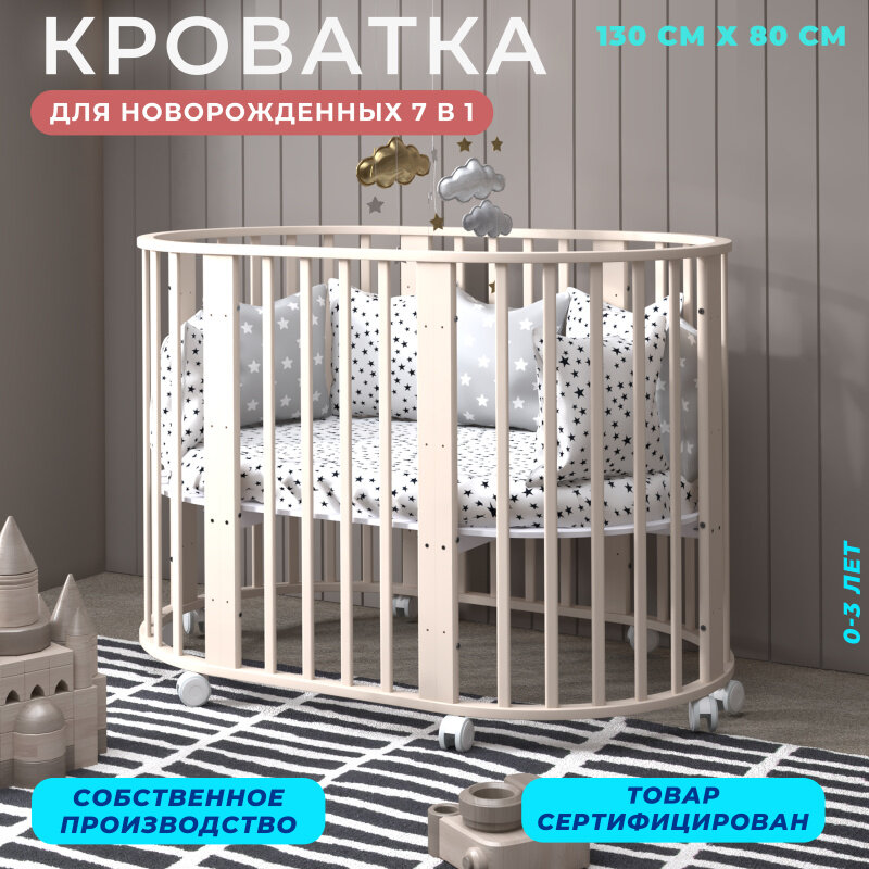 Детская кроватка для новорожденных Babyroom Мишка 7 в 1, круглая/овальная, цвет бежевый интересное: