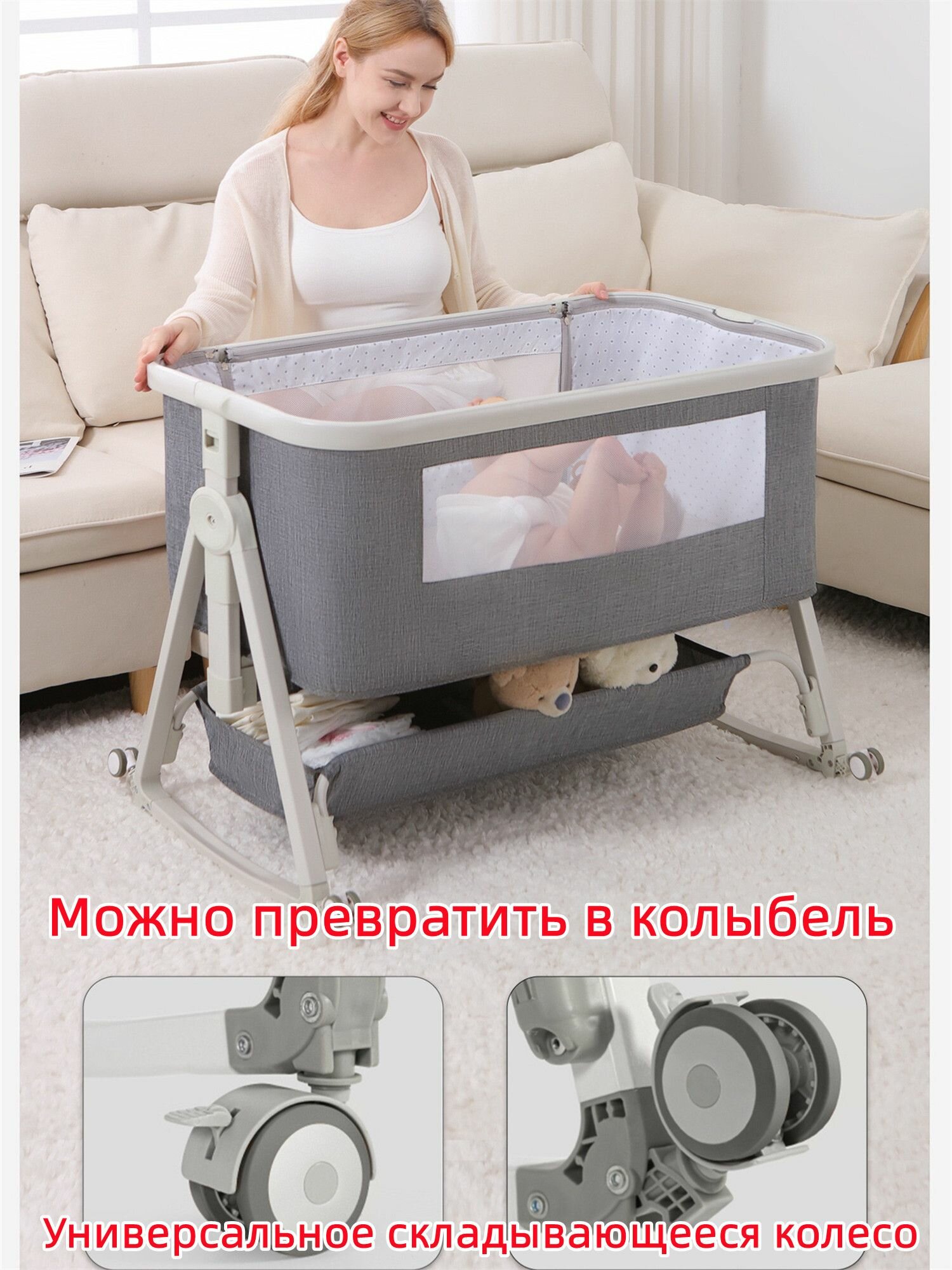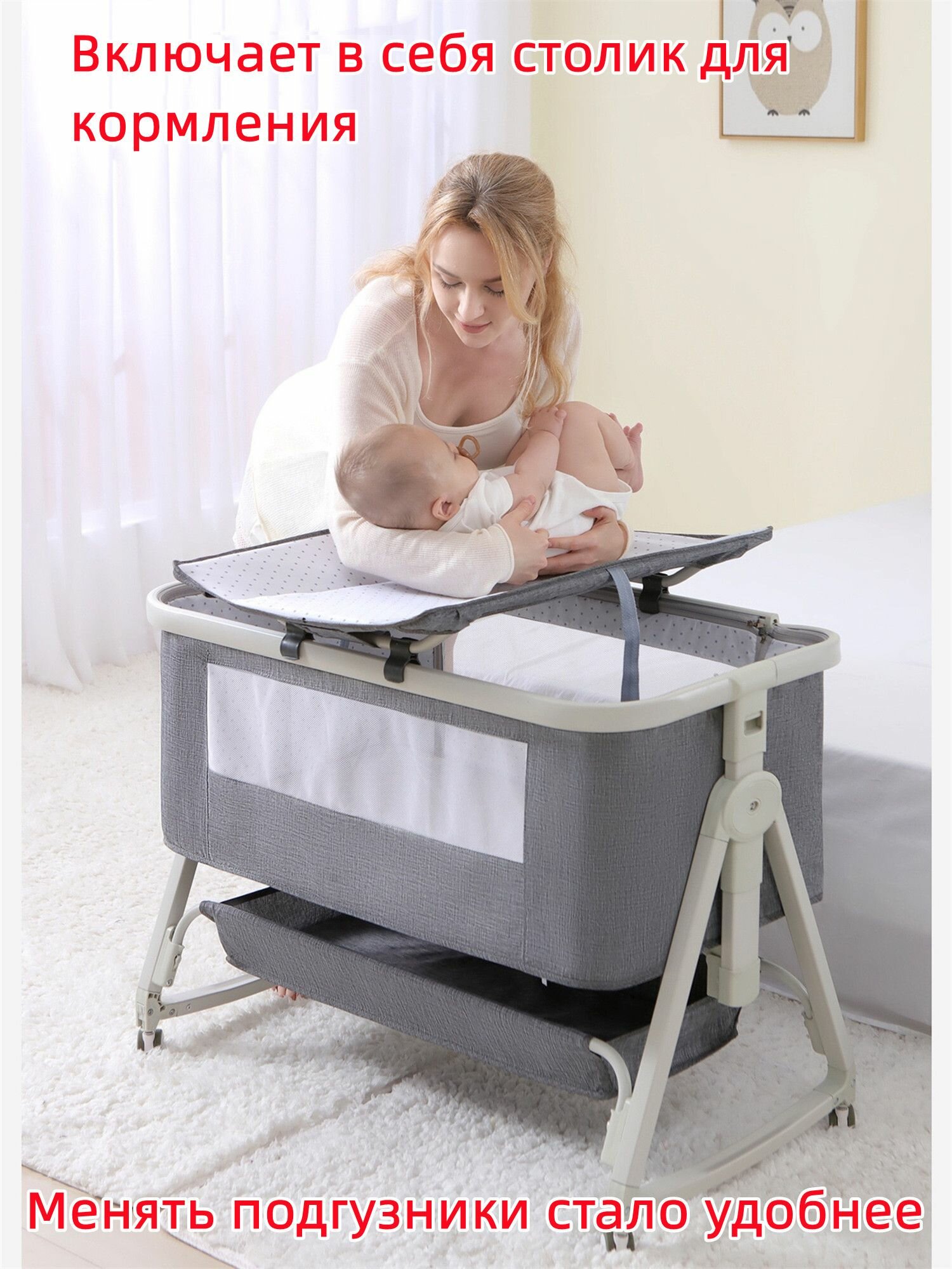 Купить Кроватка, металлический сплав, маятниковое качание, ящик для хранения, светло-серая