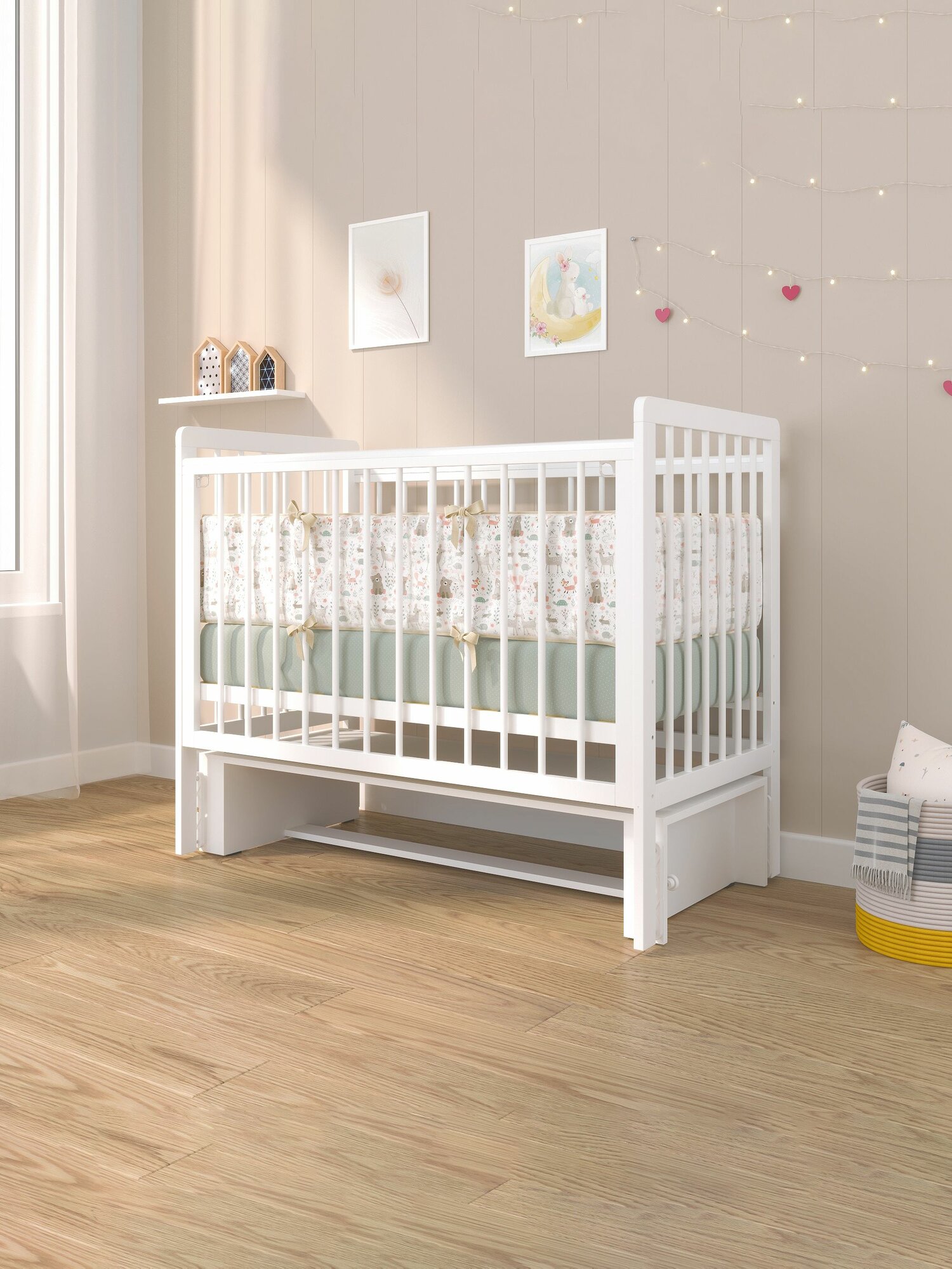 Детская кроватка с маятником для новорожденного из массива берёзы, Ariel-03, 120х60, Белая Аляска интересное: