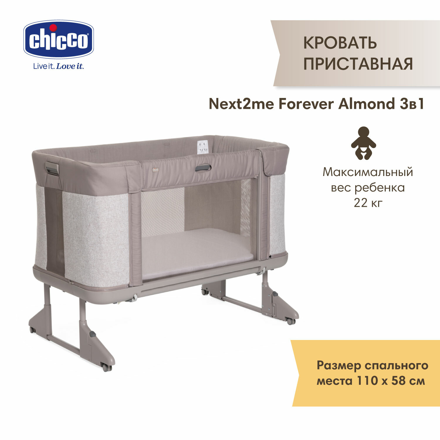Купить Кроватка для новорожденного приставная Chicco Next2Me Forever Almond
