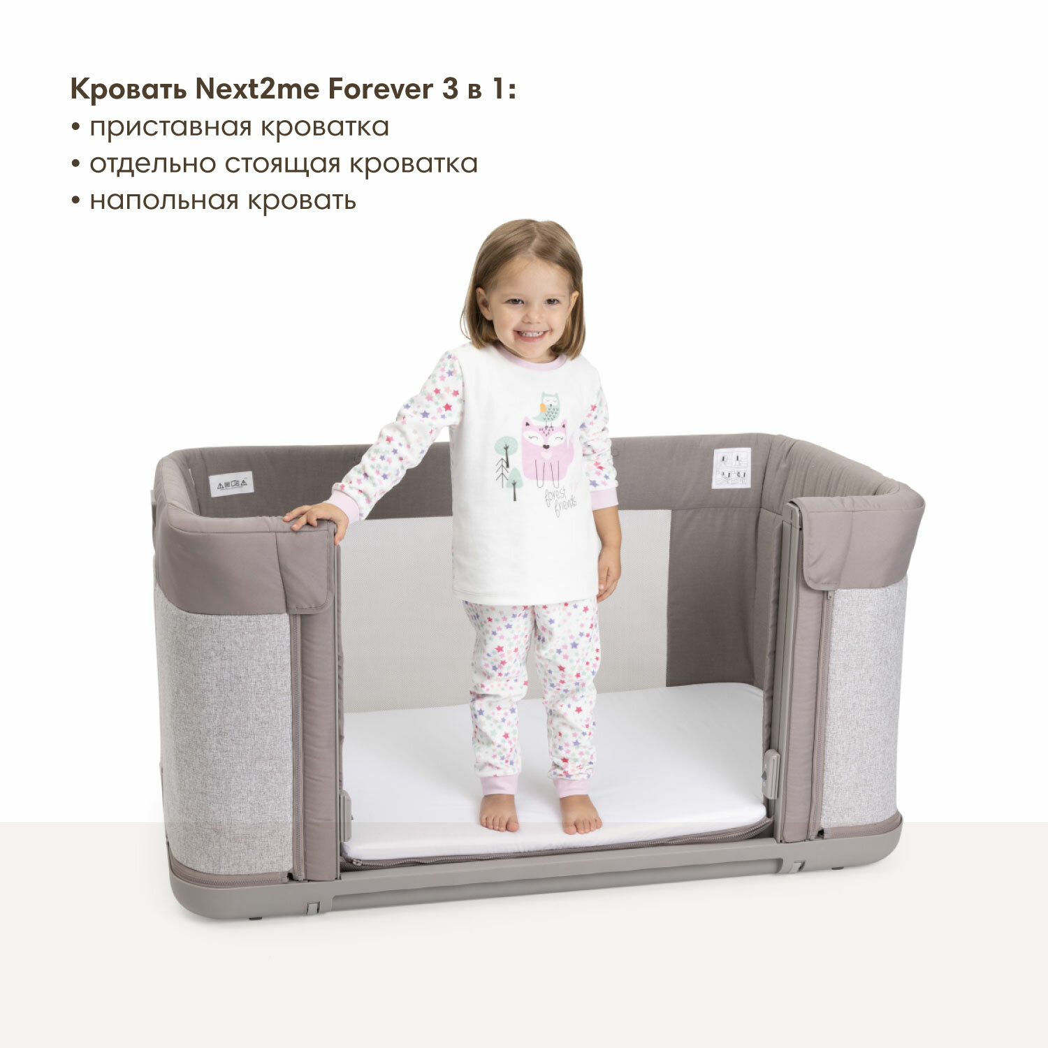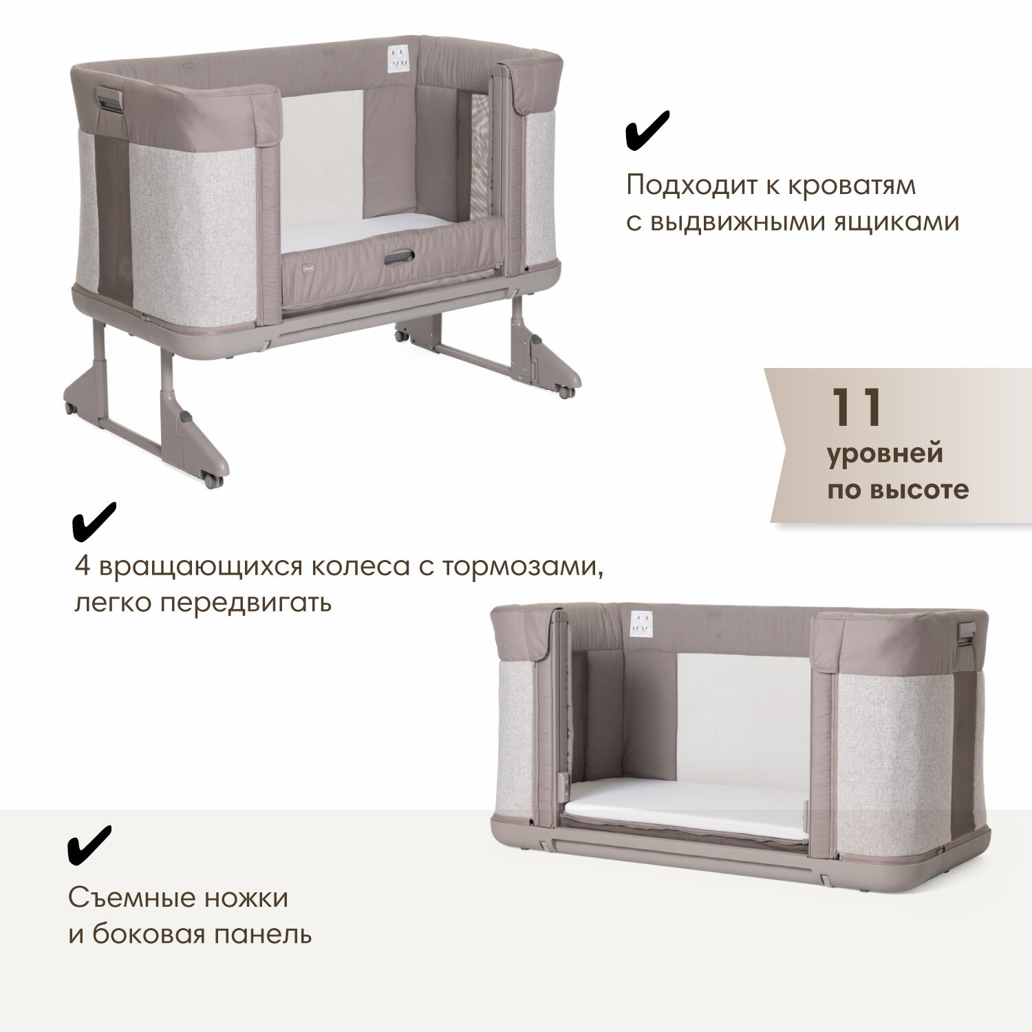 Кроватка для новорожденного приставная Chicco Next2Me Forever Almond интересное: