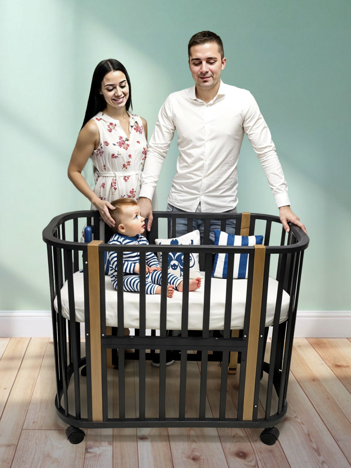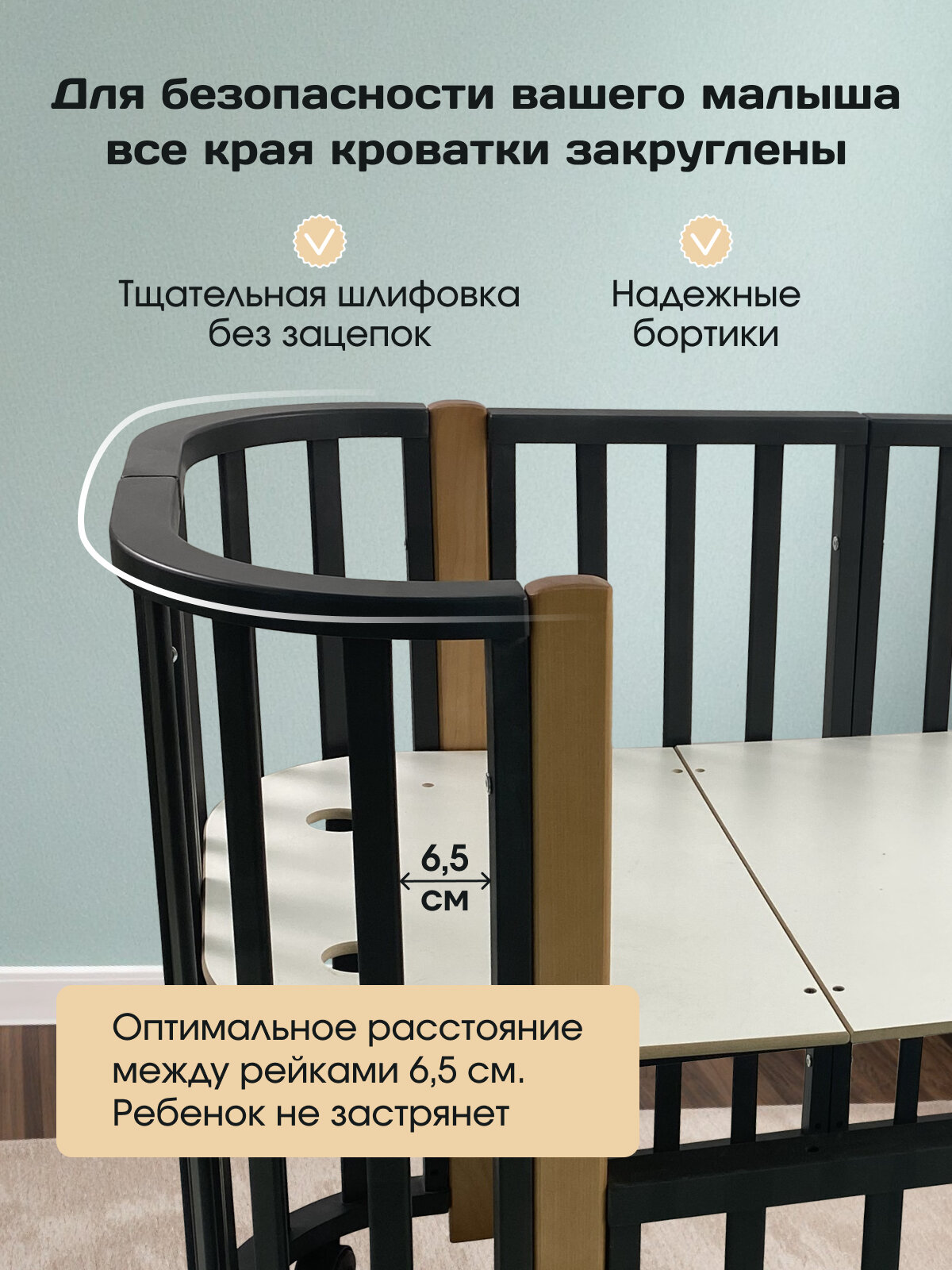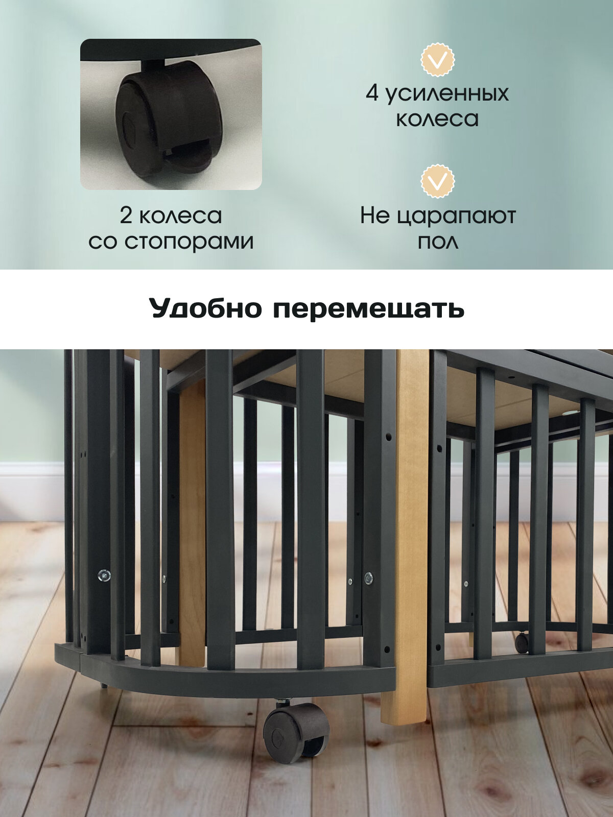 Азбука Кроваток, Детская кровать трансформер для новорожденных 5в1 Santorini, графит бук, 85х60, 120х60, на колесах интересное: