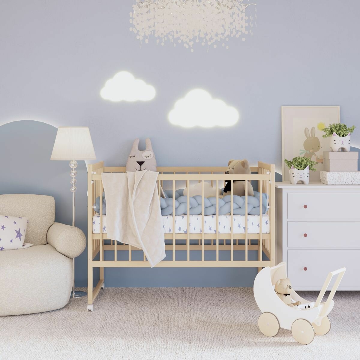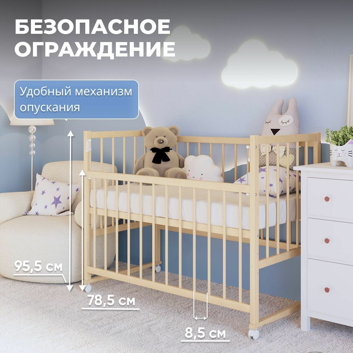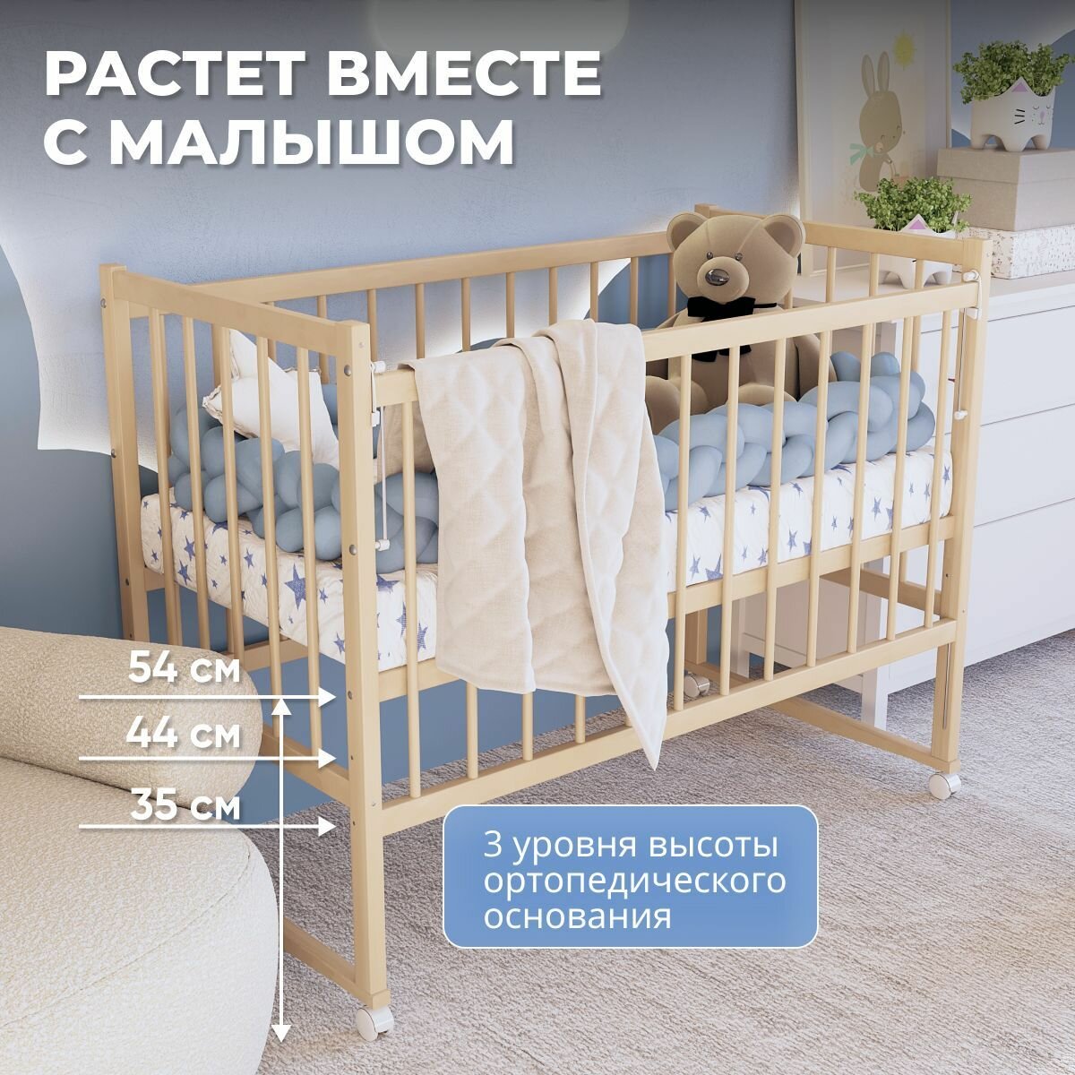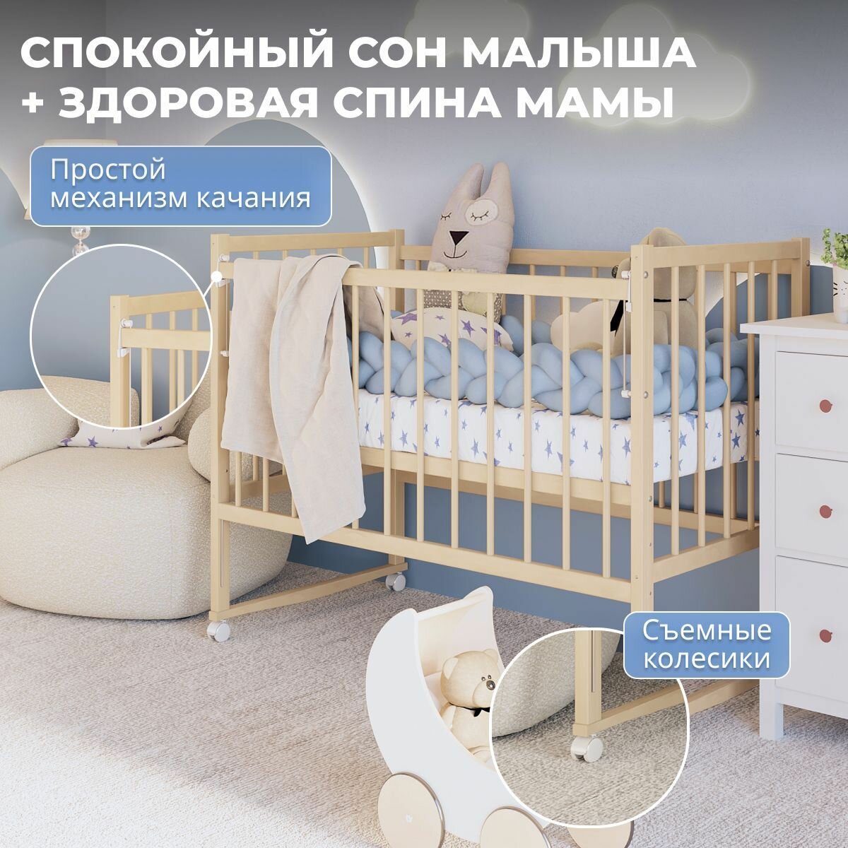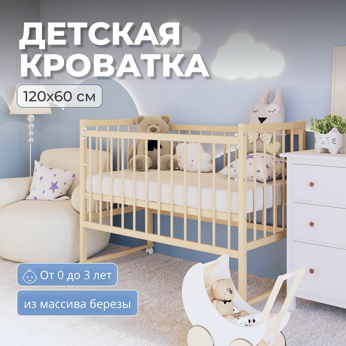 Кроватка для новорожденных без маятника из массива березы, 120х60 см, BambinoBed интересное: