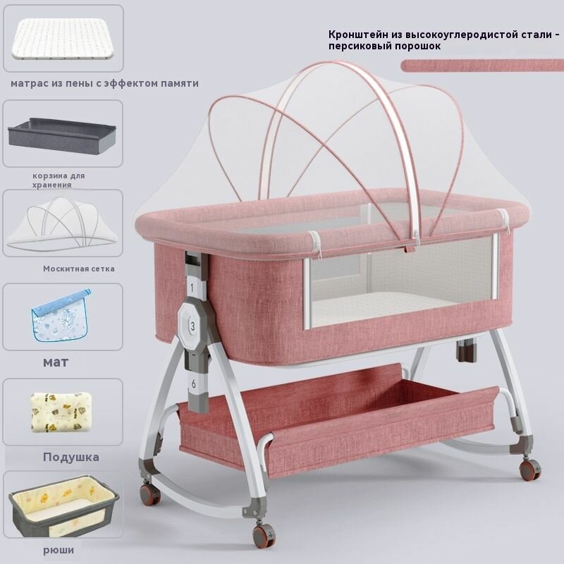 Кроватка-качалка, складная, металлический сплав, персиково-розовая интересное: