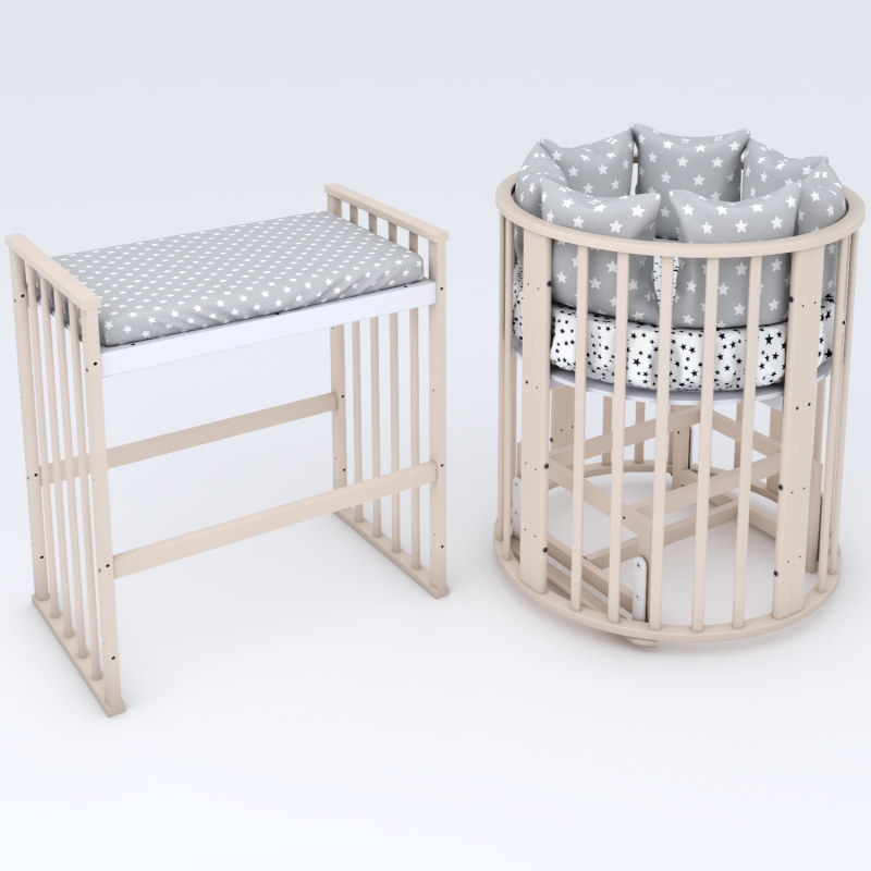 Детская кроватка для новорожденных Babyroom Мишка 7 в 1 с мятником, круглая/овальная, цвет бежевый интересное: