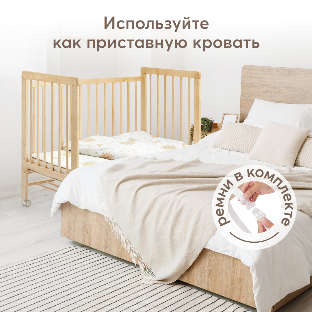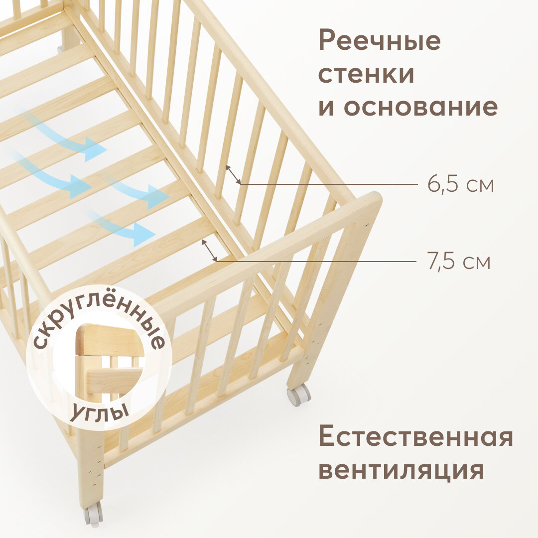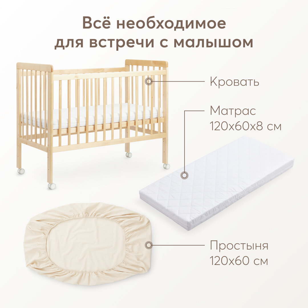 95048, Кроватка для новорожденных c матрасом Happy Baby MIRRA LIGHT, съемная стенка, с простыней 120х60 см, из березы интересное: