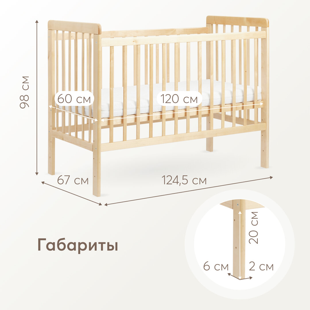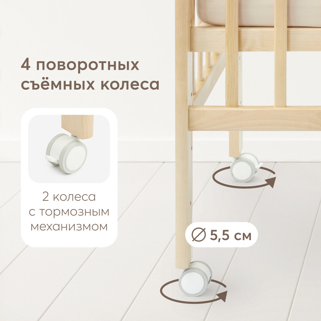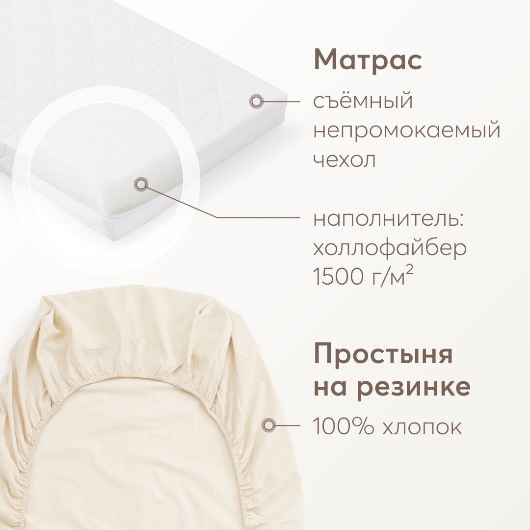 95048, Кроватка для новорожденных c матрасом Happy Baby MIRRA LIGHT, съемная стенка, с простыней 120х60 см, из березы интересное: