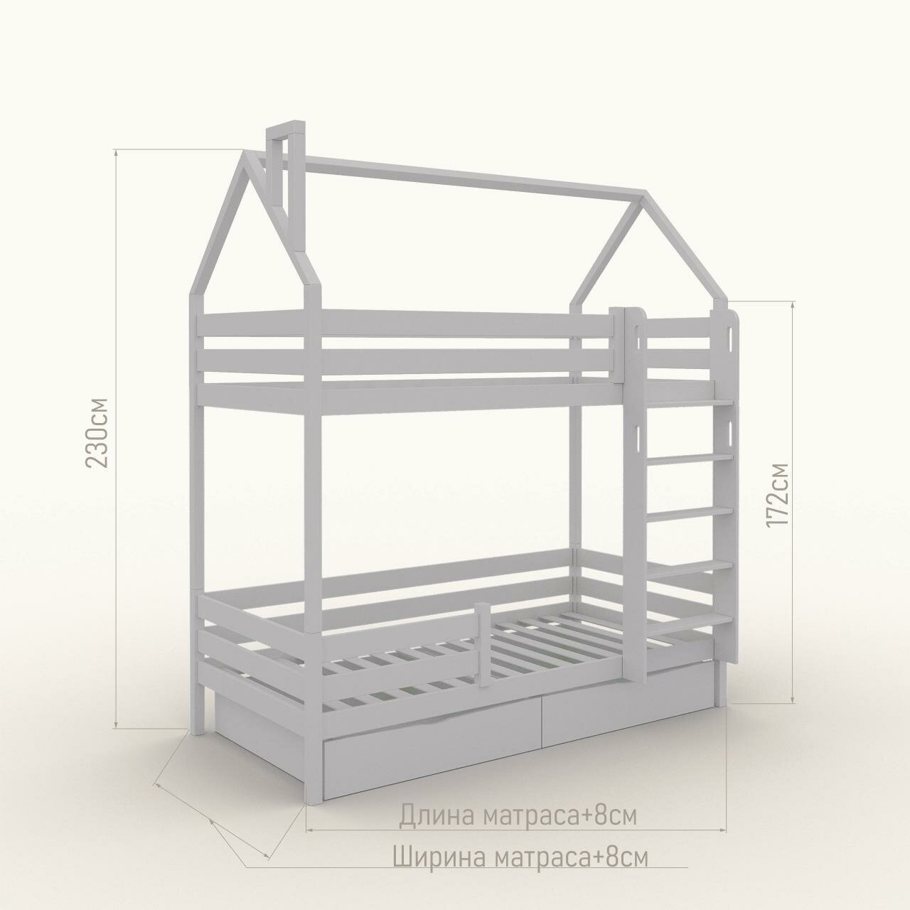 Двухъярусная кровать-домик 200*90, без ящиков, лестница с отверстиями для рук интересное: