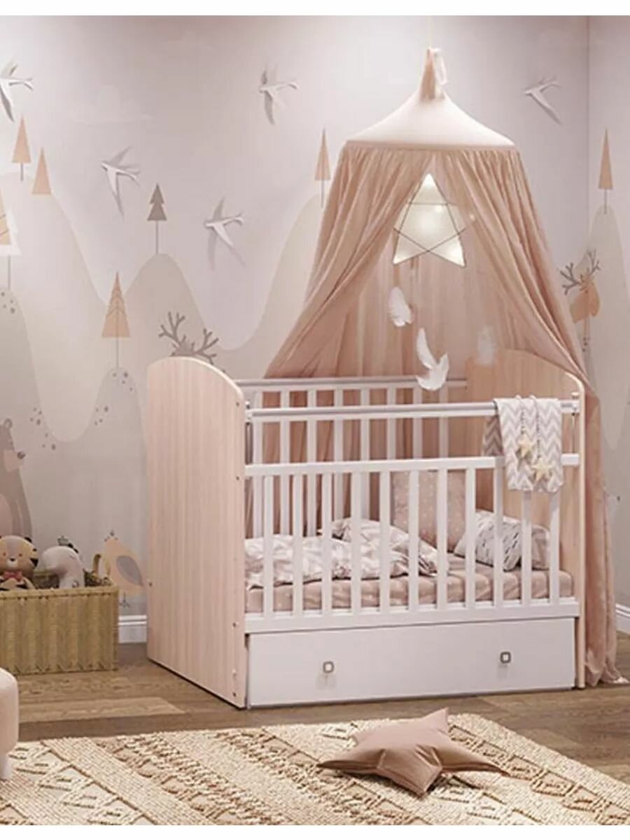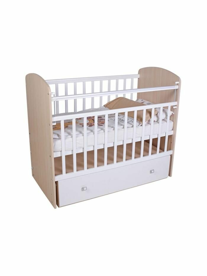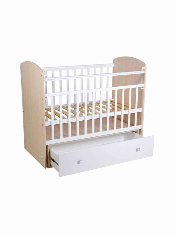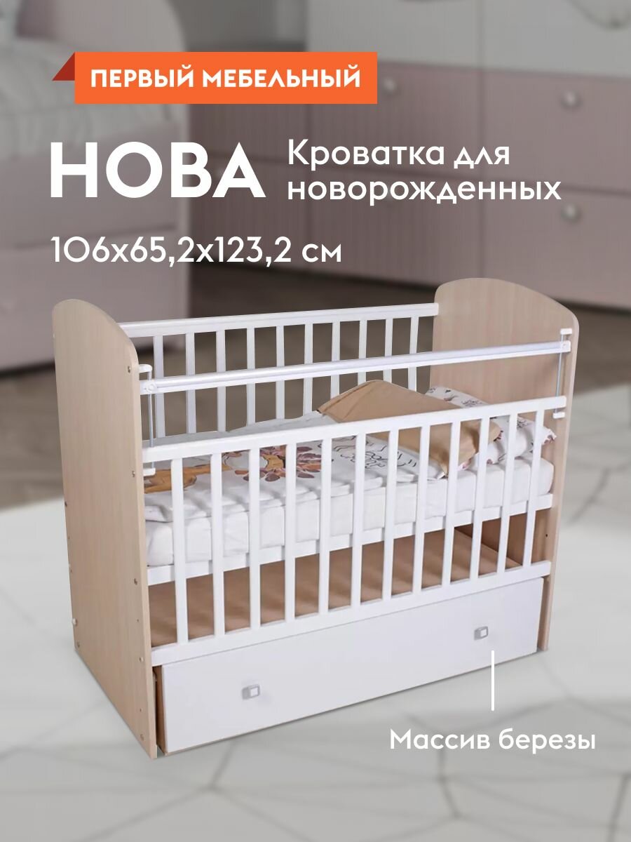 Кроватка для новорожденных Нова с маятником, деревянная, с ящиком для хранения, 60х120 см спальное место, Белый / Дуб Пастельный интересное:
