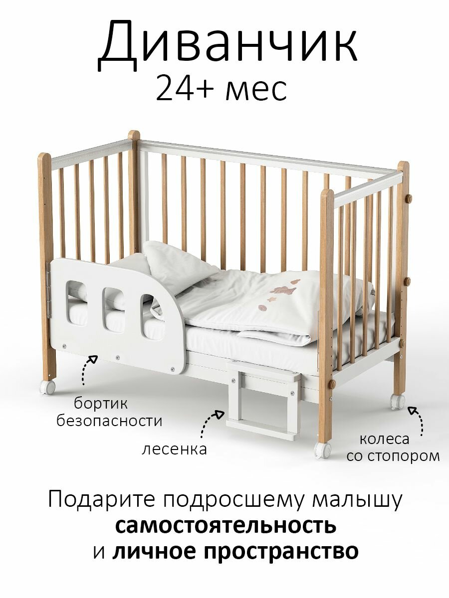 ВДК Детская кровать-трансформер «Слоник» с поперечным маятником, цвет белый